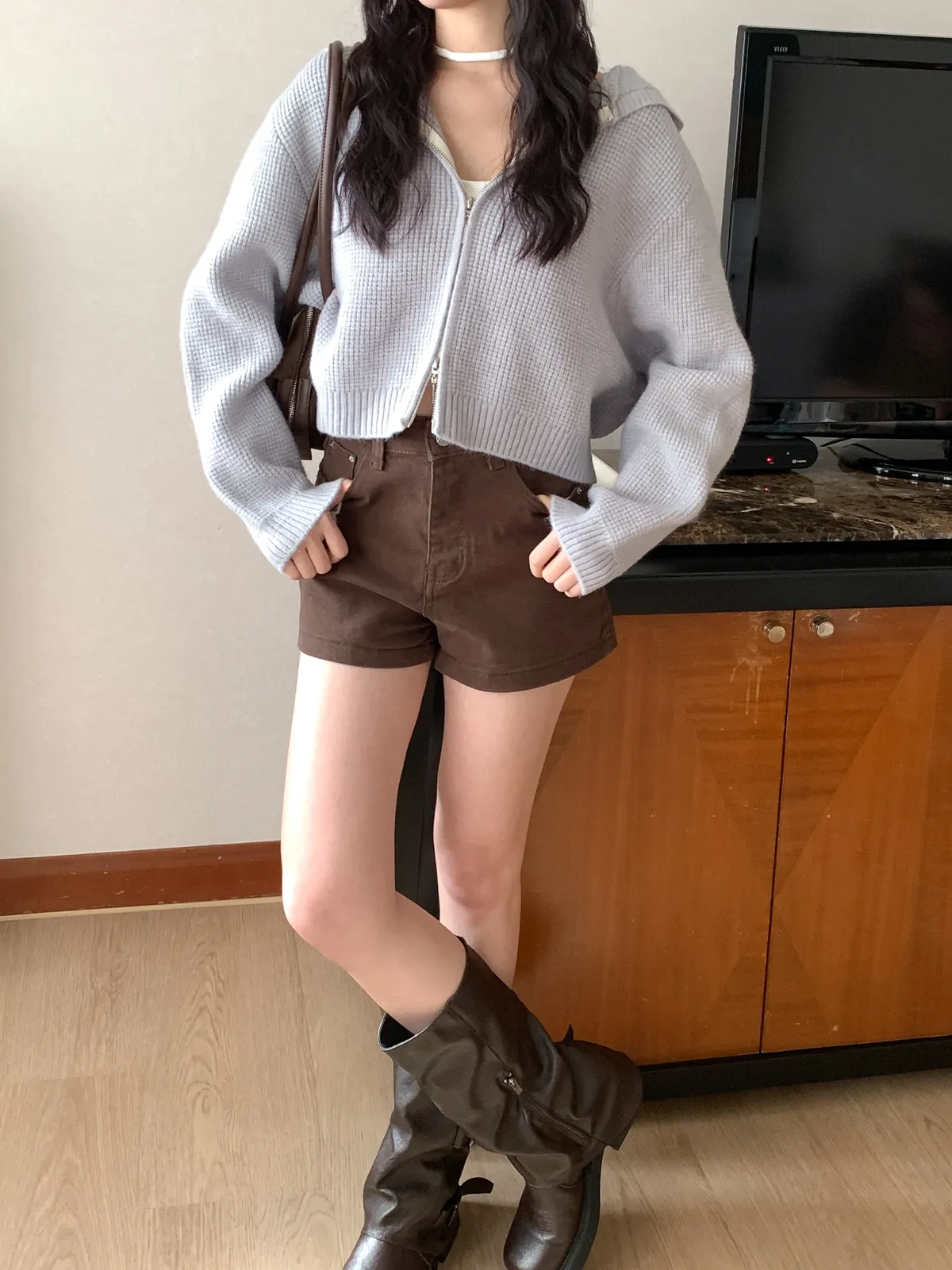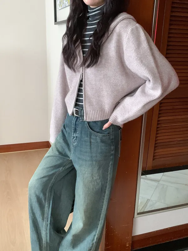 寬鬆短版剪裁很顯比例 做雙拉鍊連帽設計