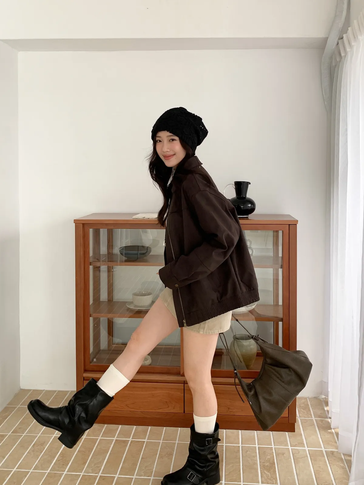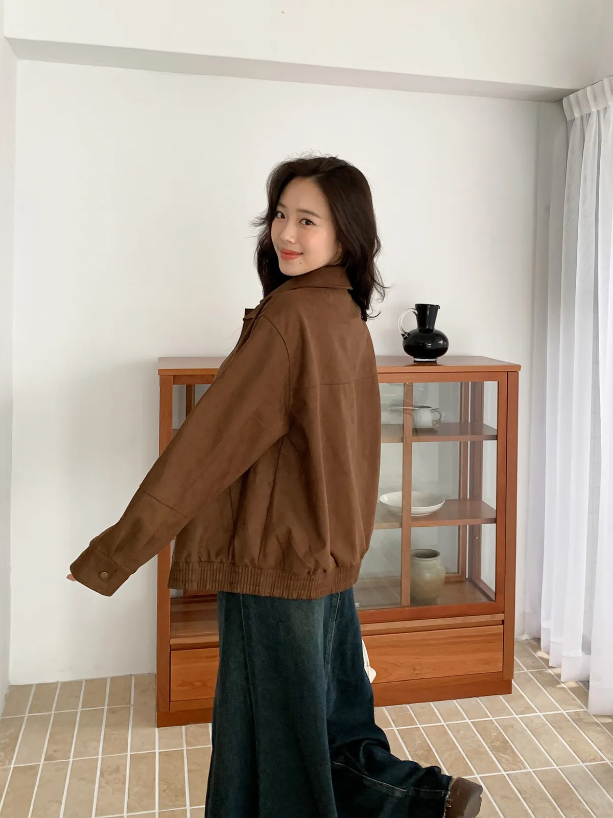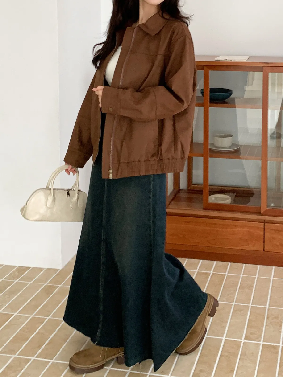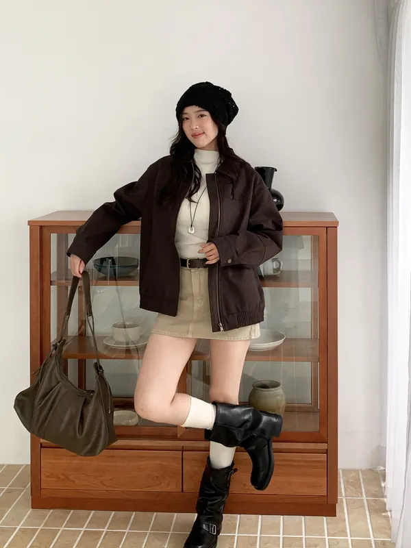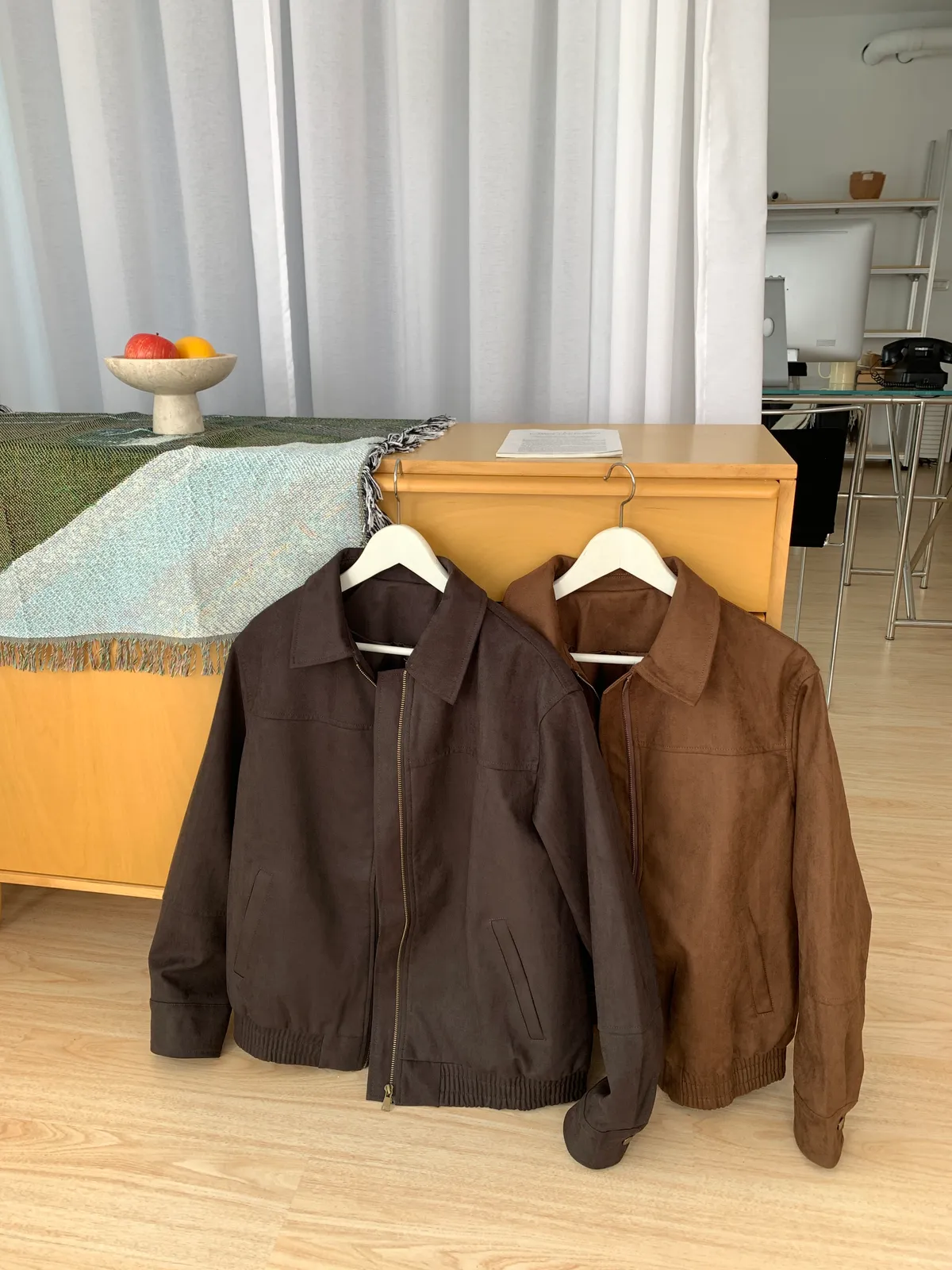 秋日麂皮!美拉德絨毛拉鍊翻領外套
