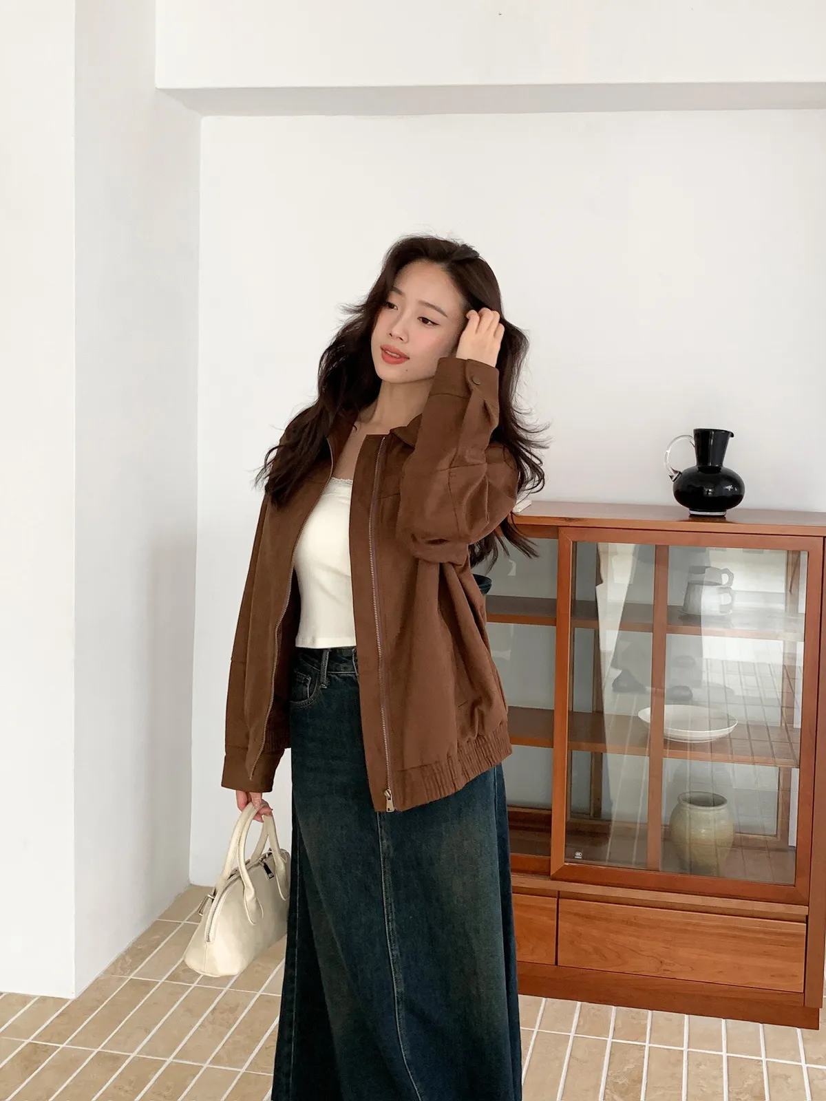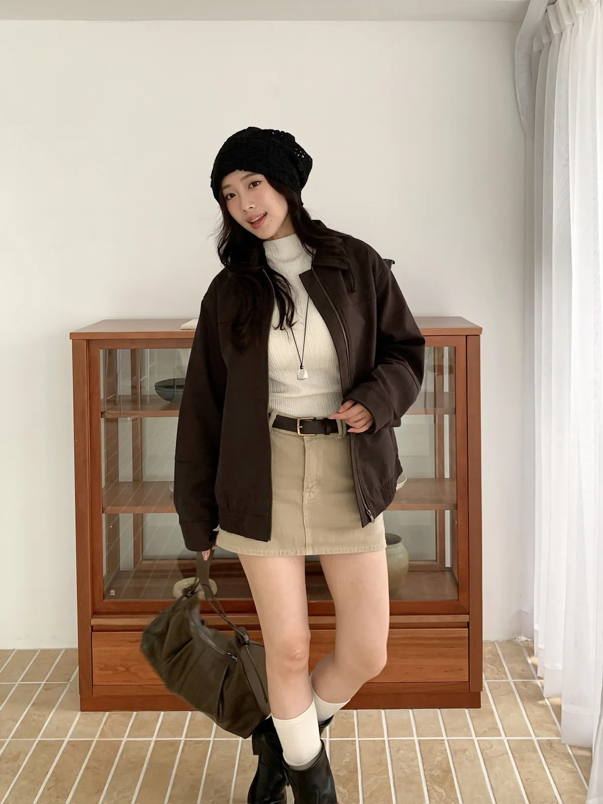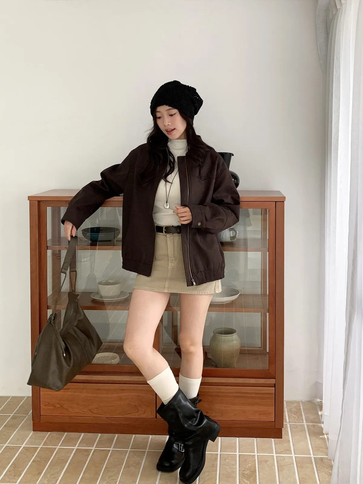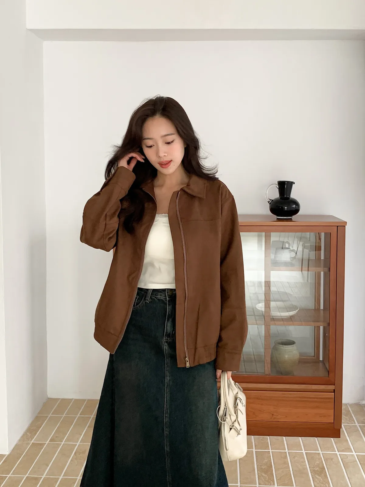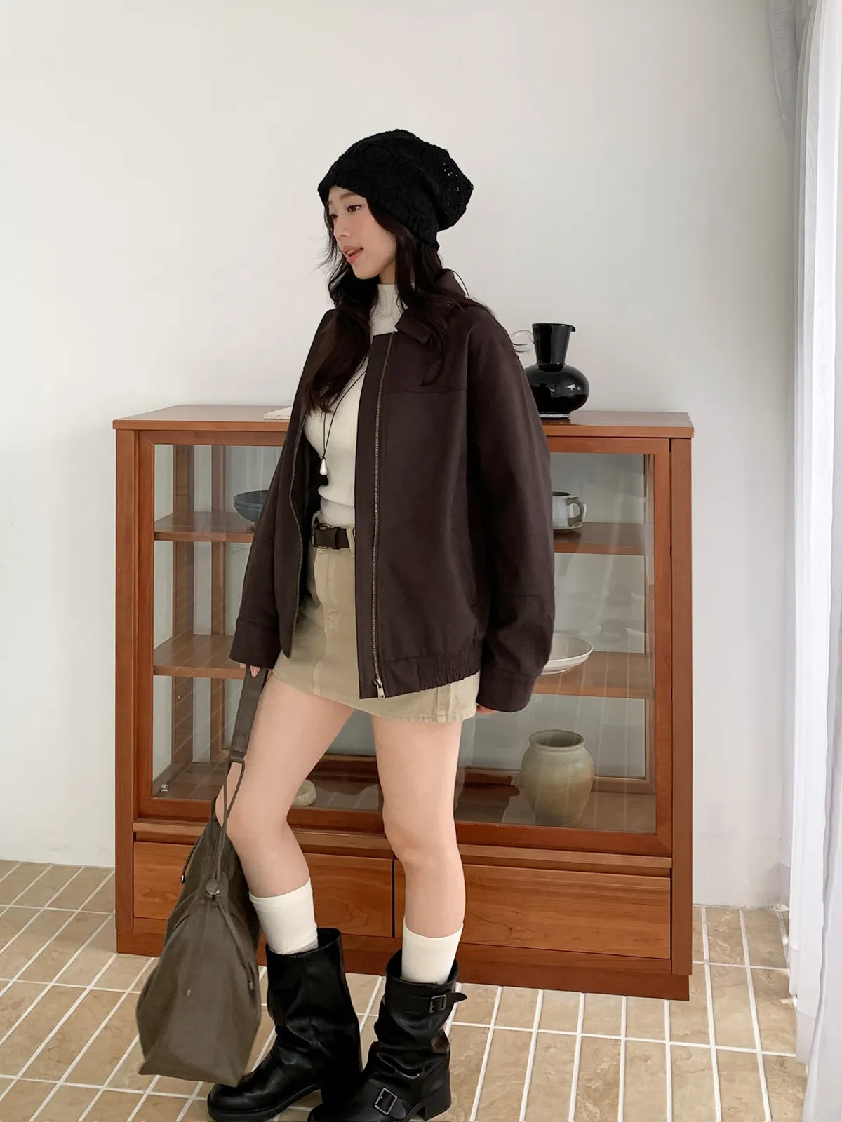 秋日麂皮!美拉德絨毛拉鍊翻領外套