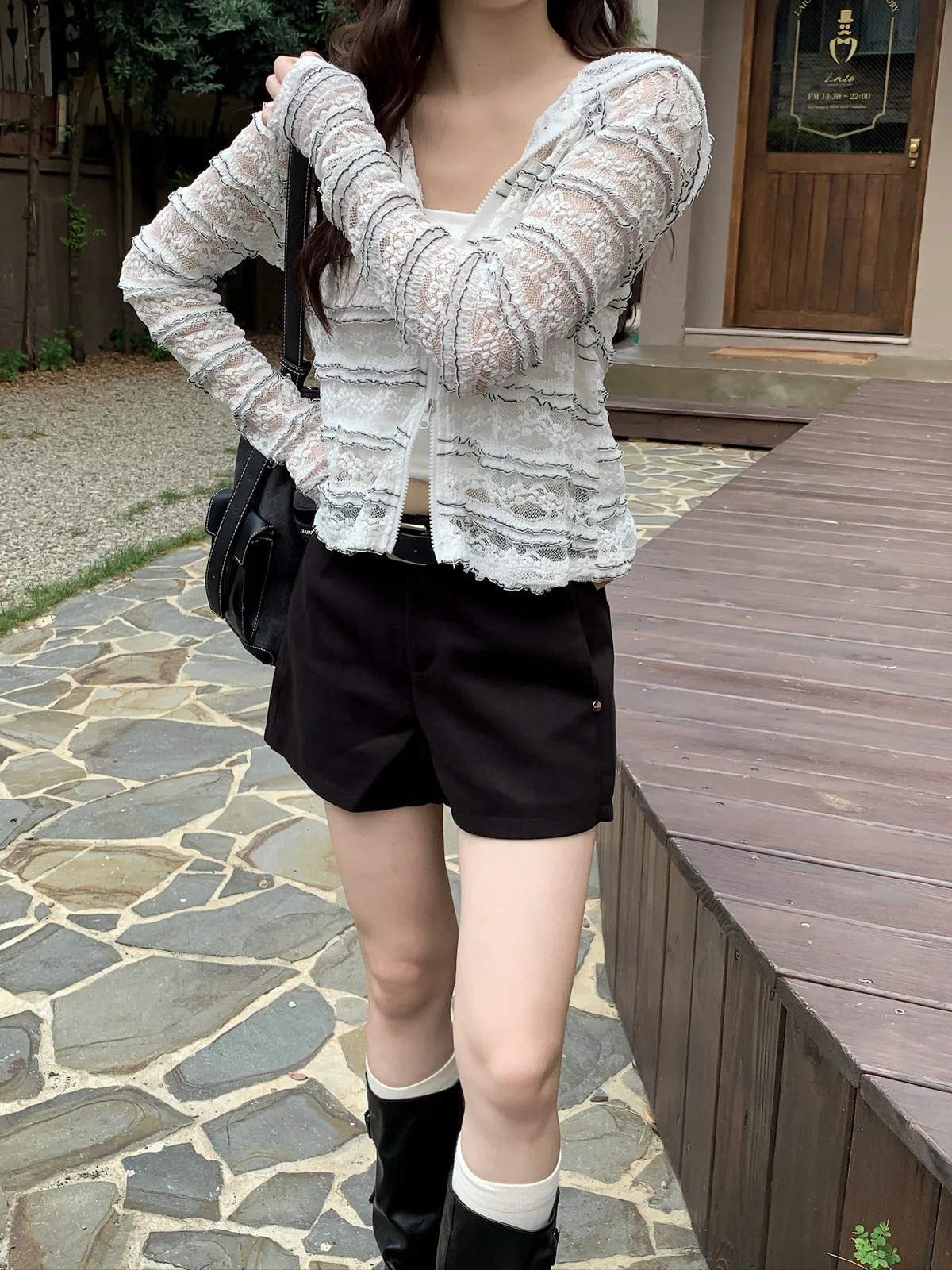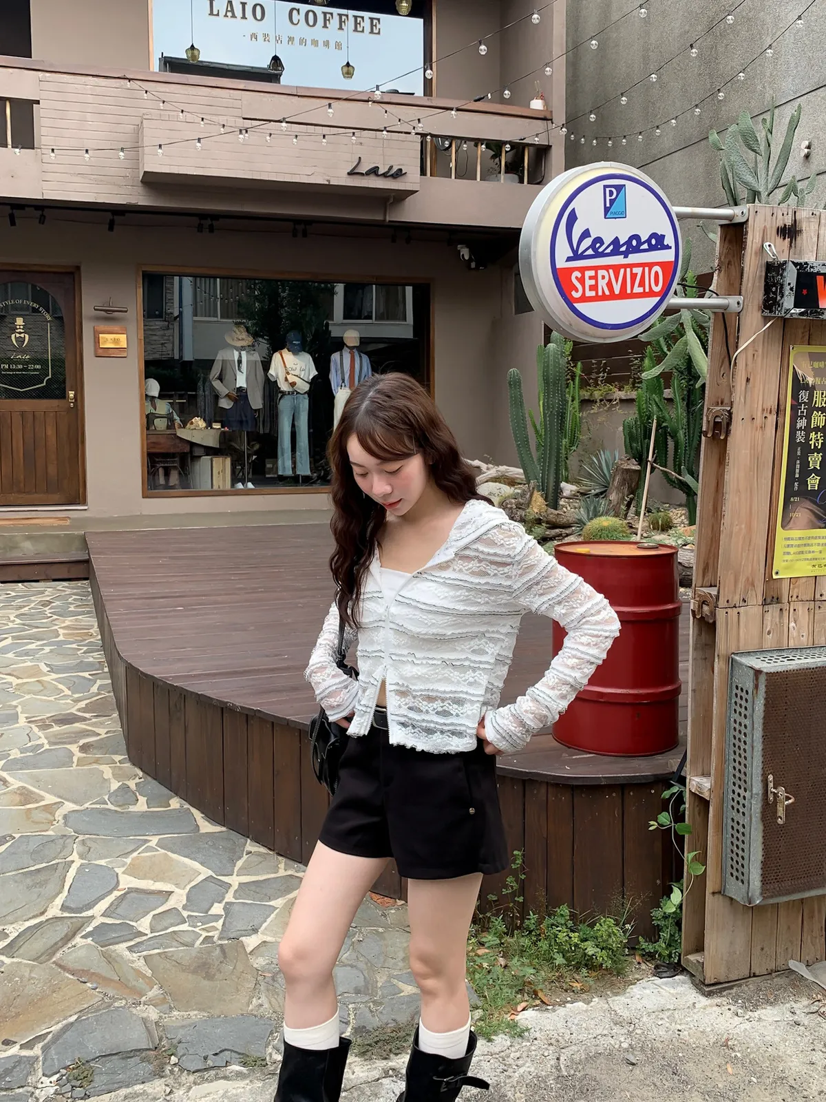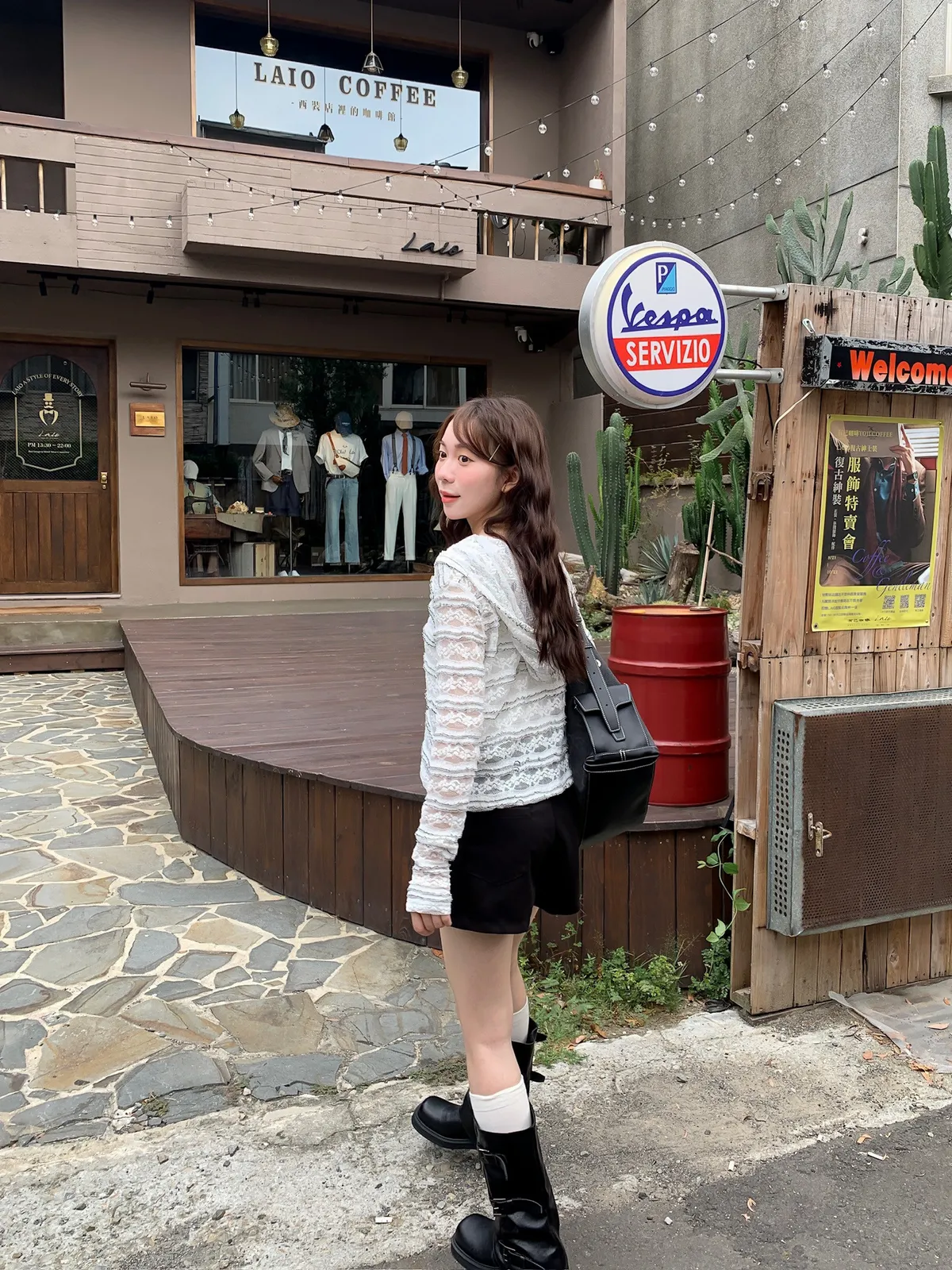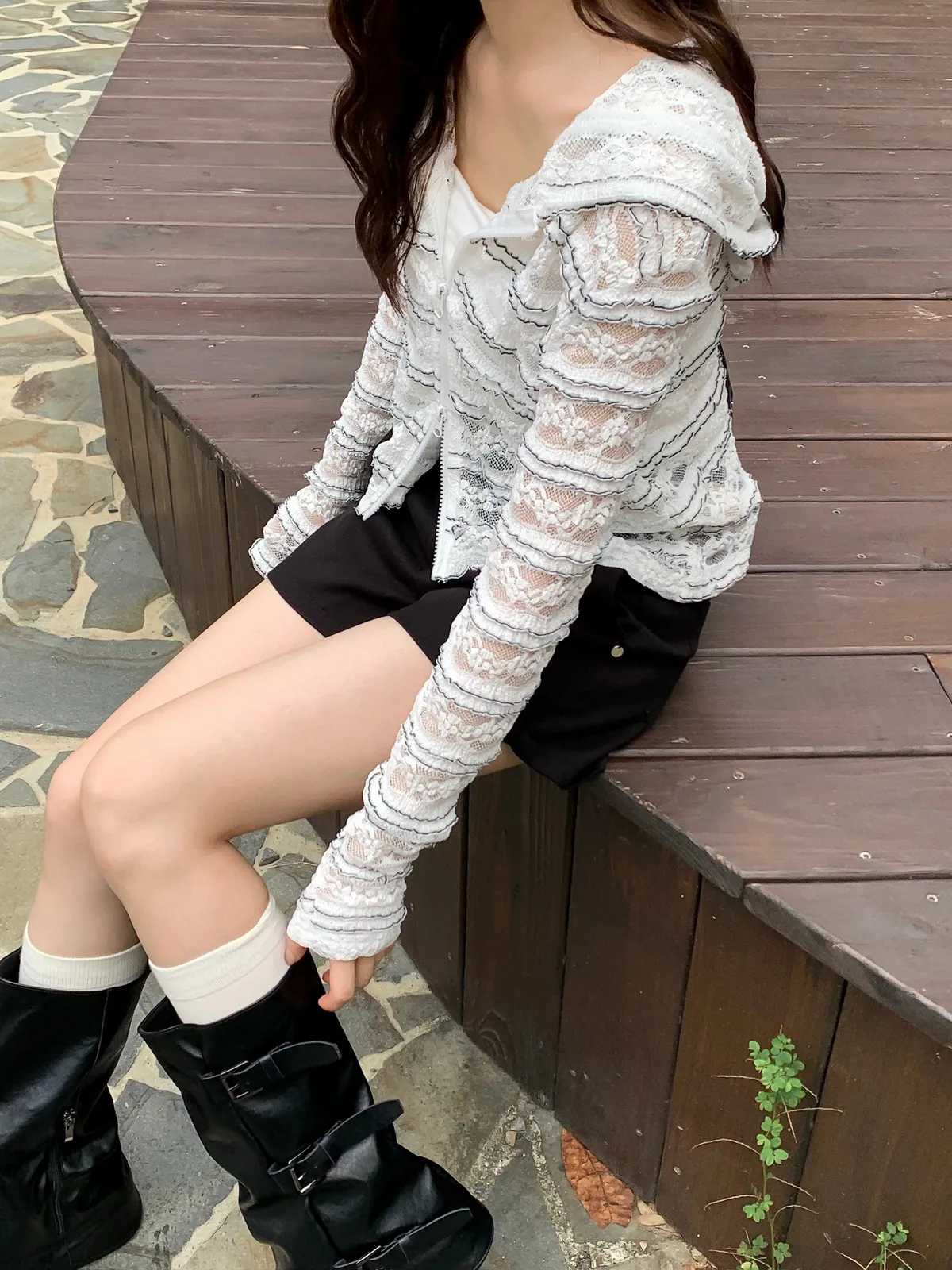 雲霧繚繞|花邊蕾絲連帽拉鍊外套