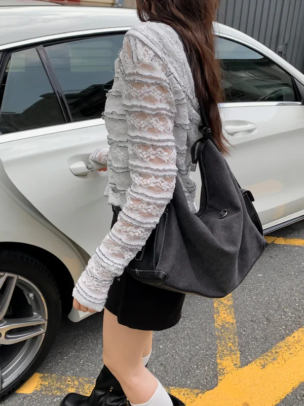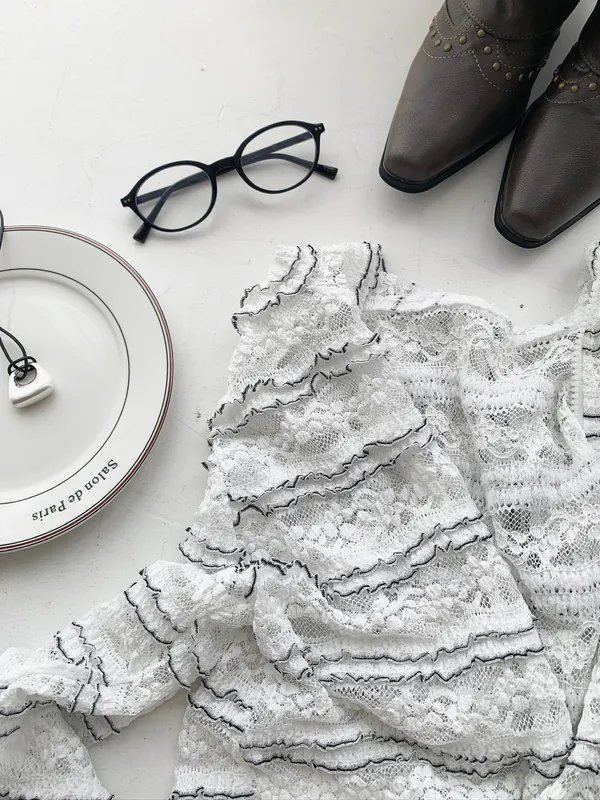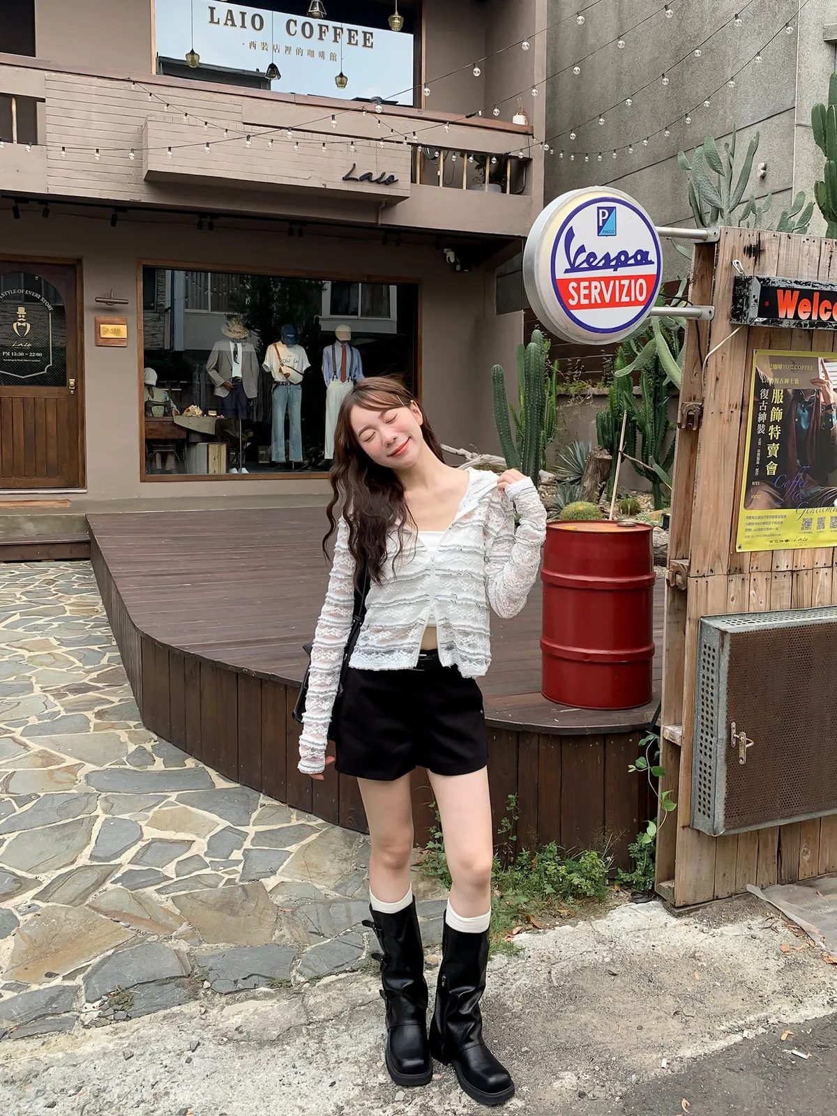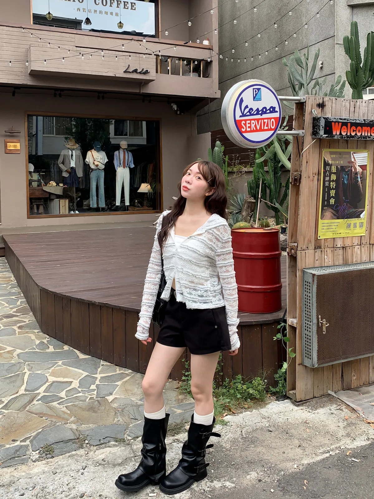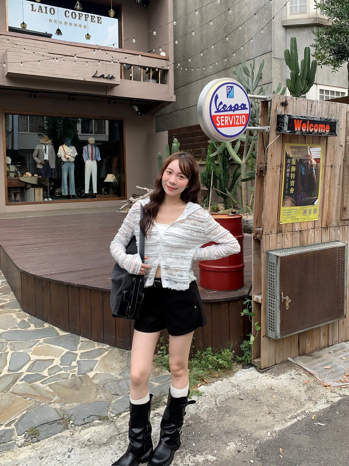 雲霧繚繞|花邊蕾絲連帽拉鍊外套