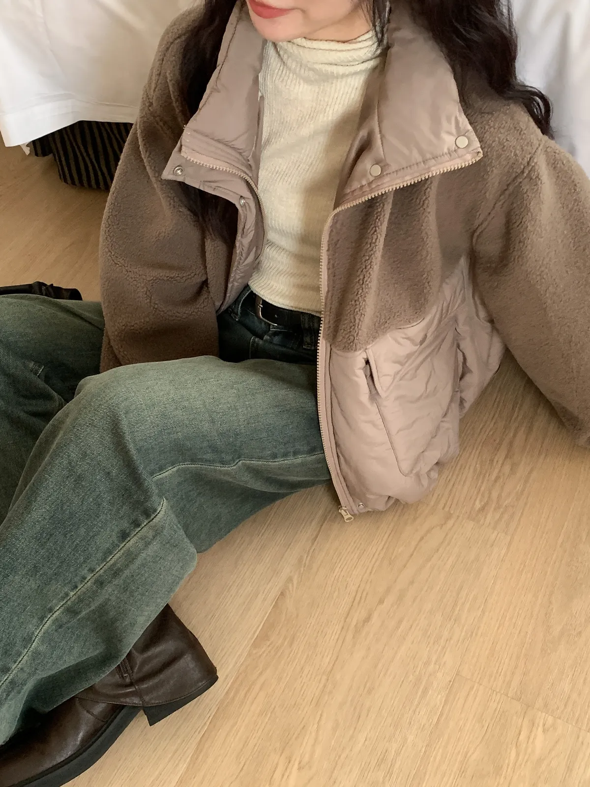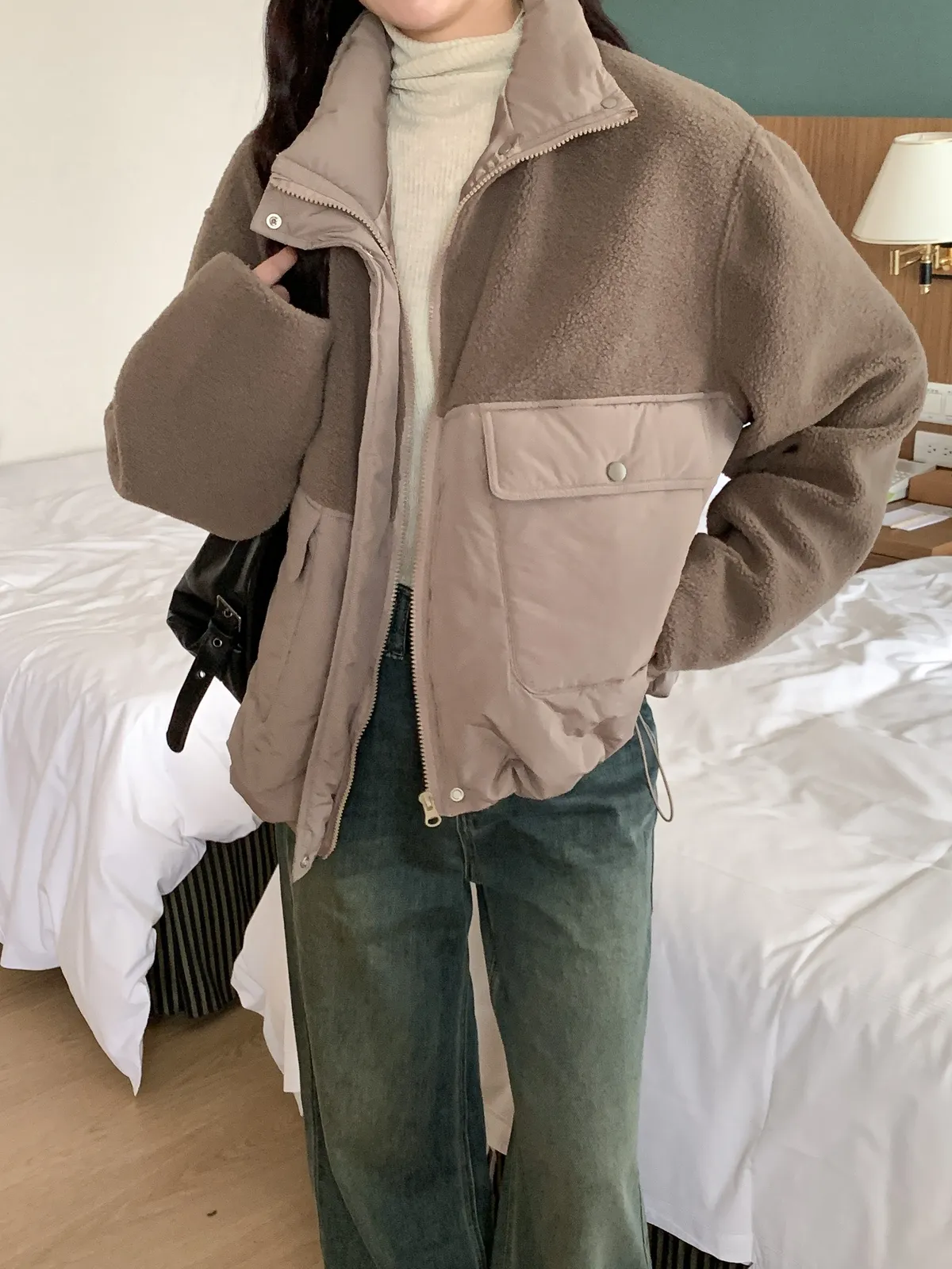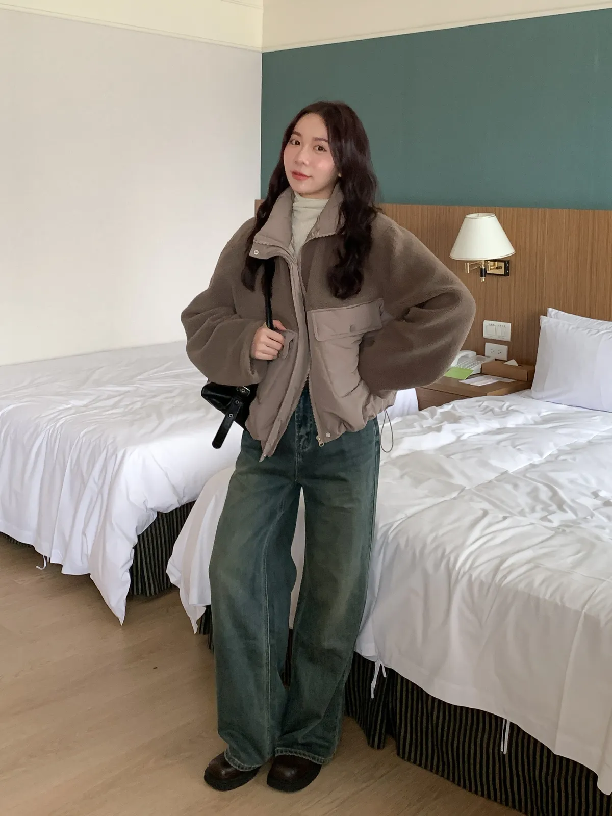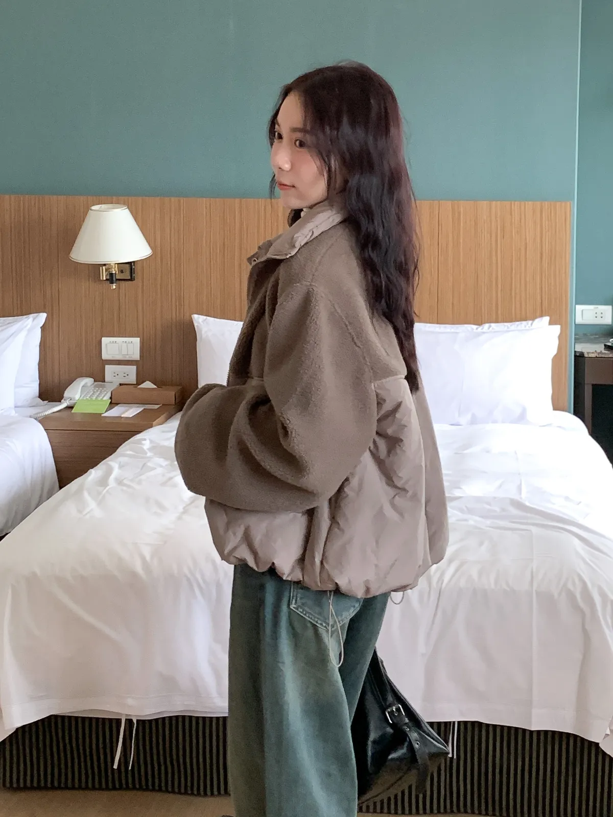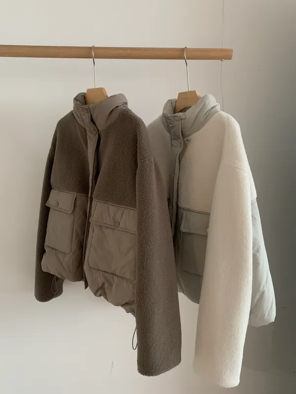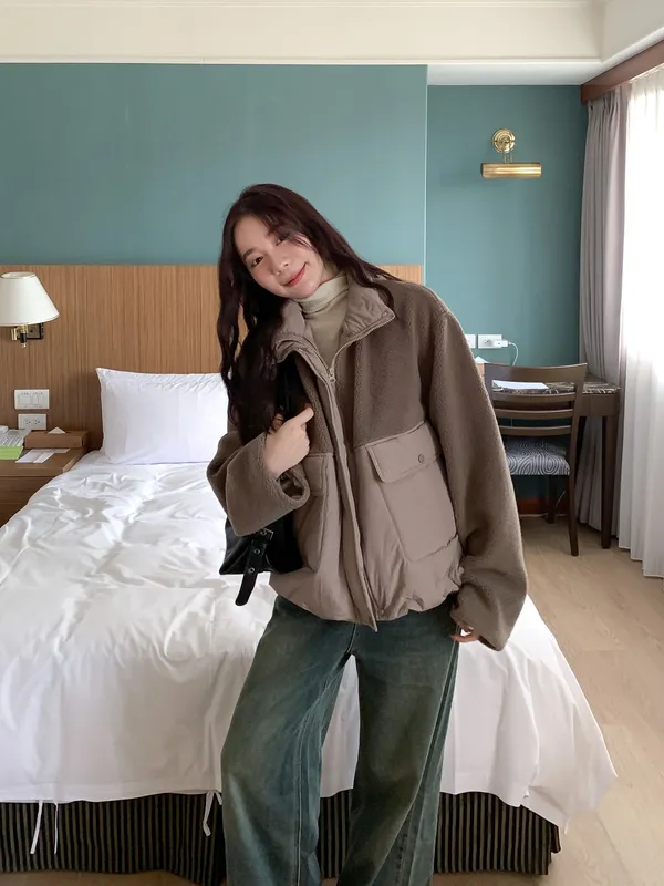 羊羔毛拼接異材質 拉鍊+四合扣雙重保暖