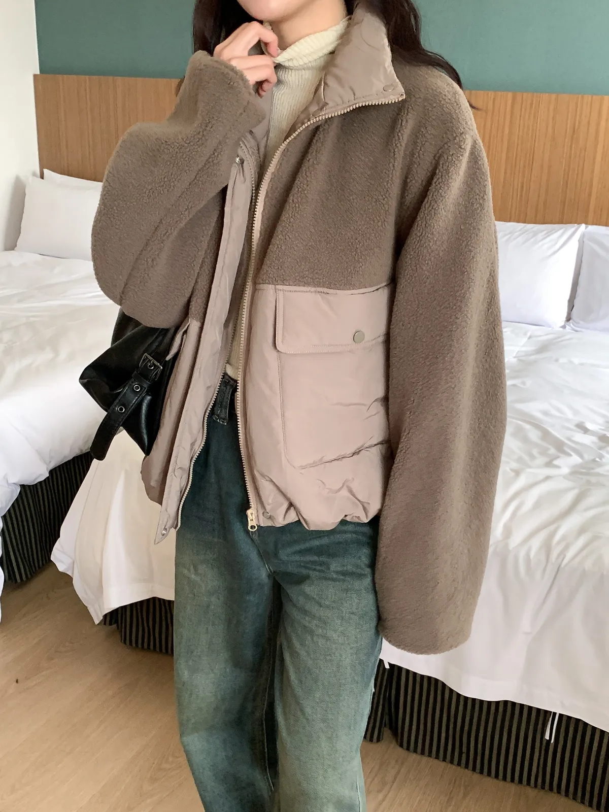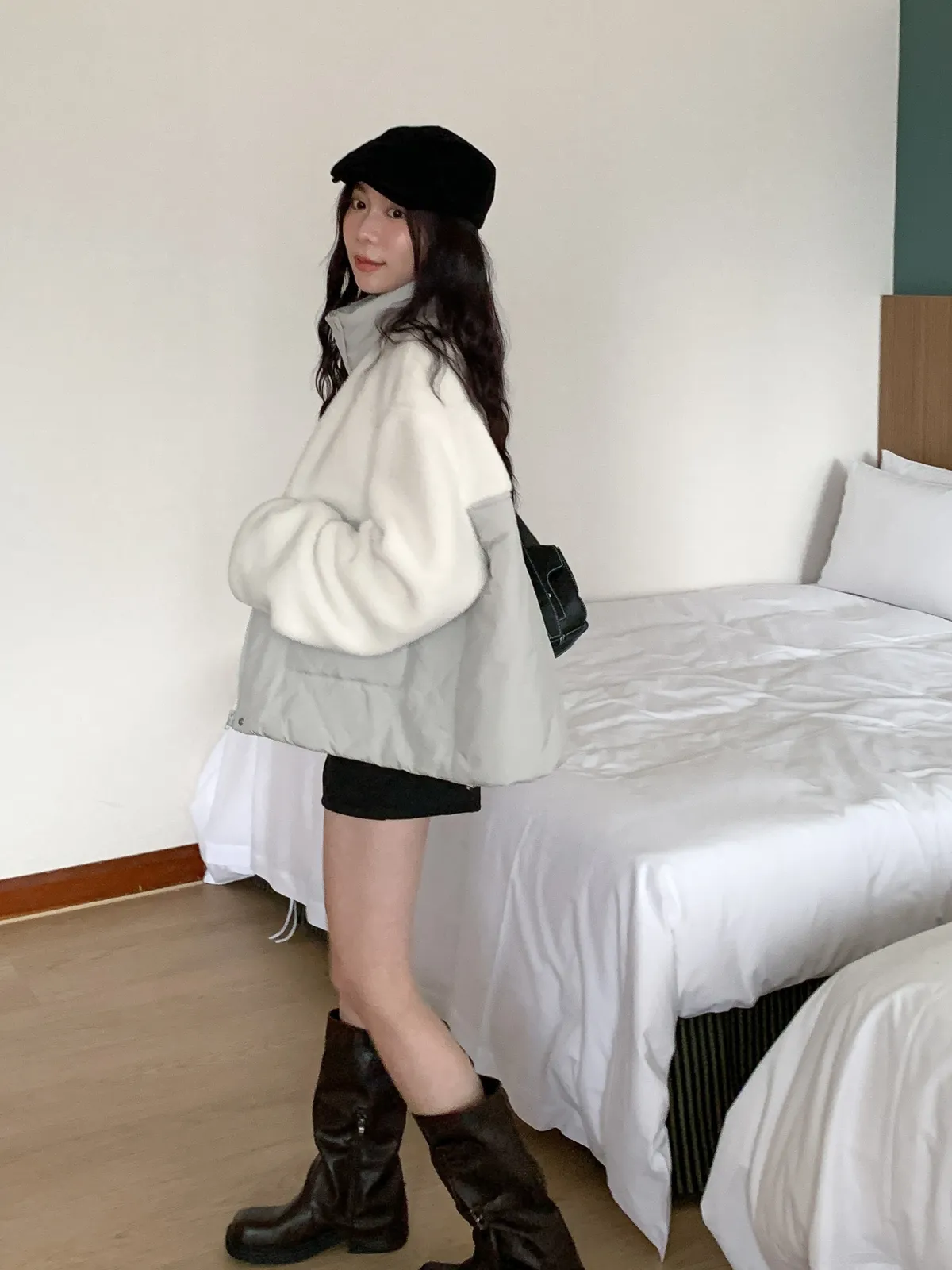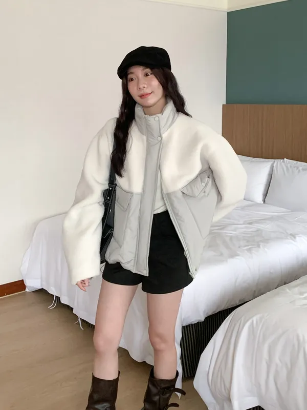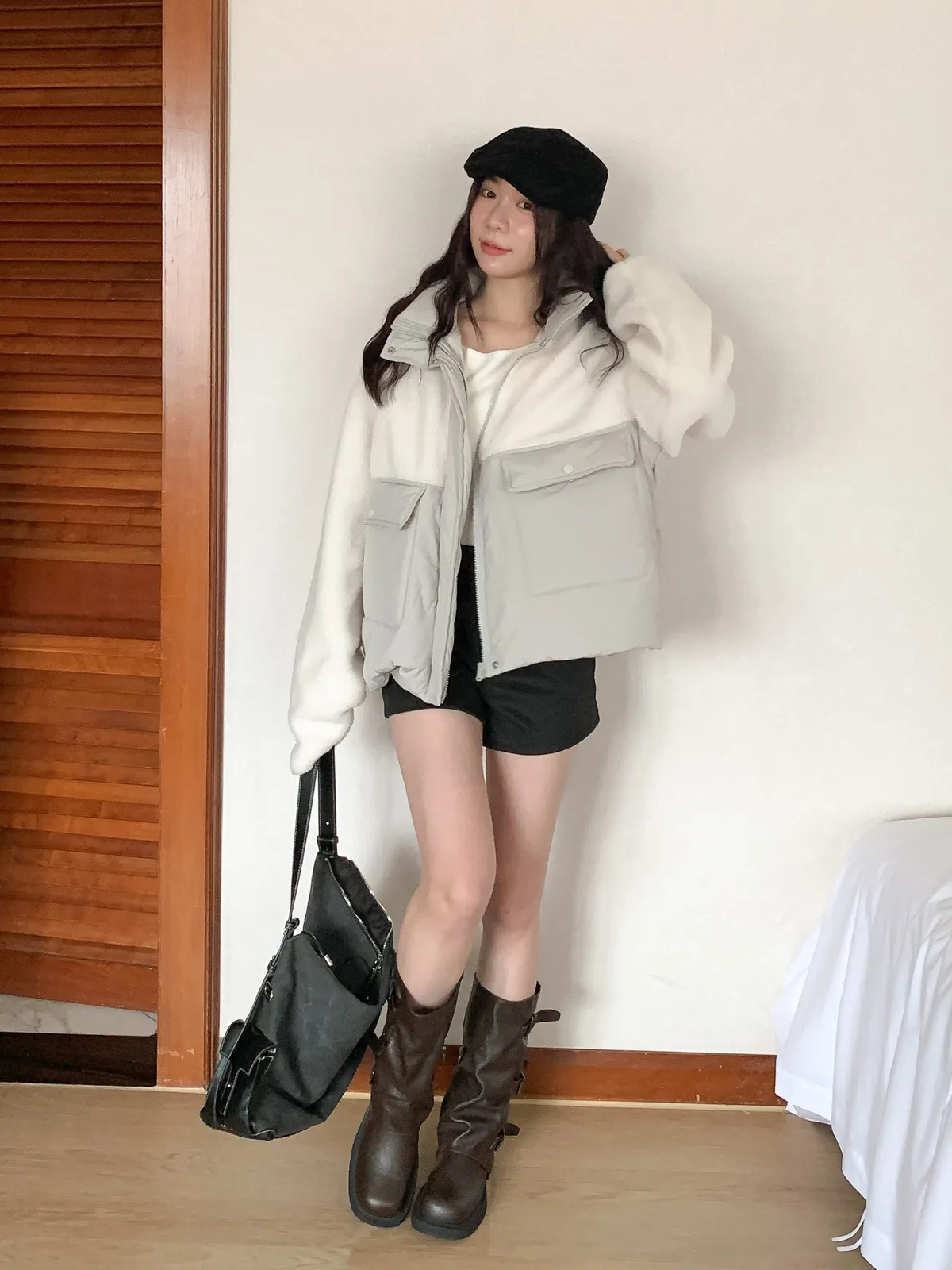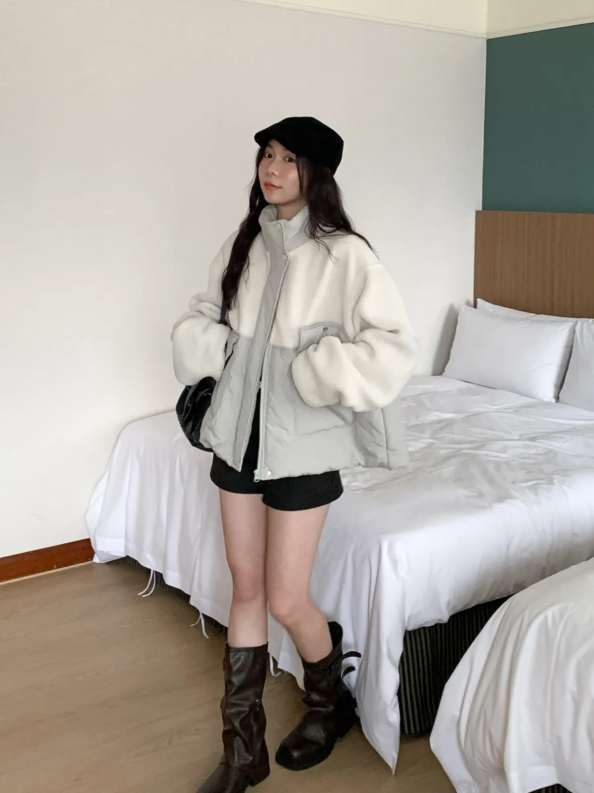 羊羔毛拼接異材質 拉鍊+四合扣雙重保暖