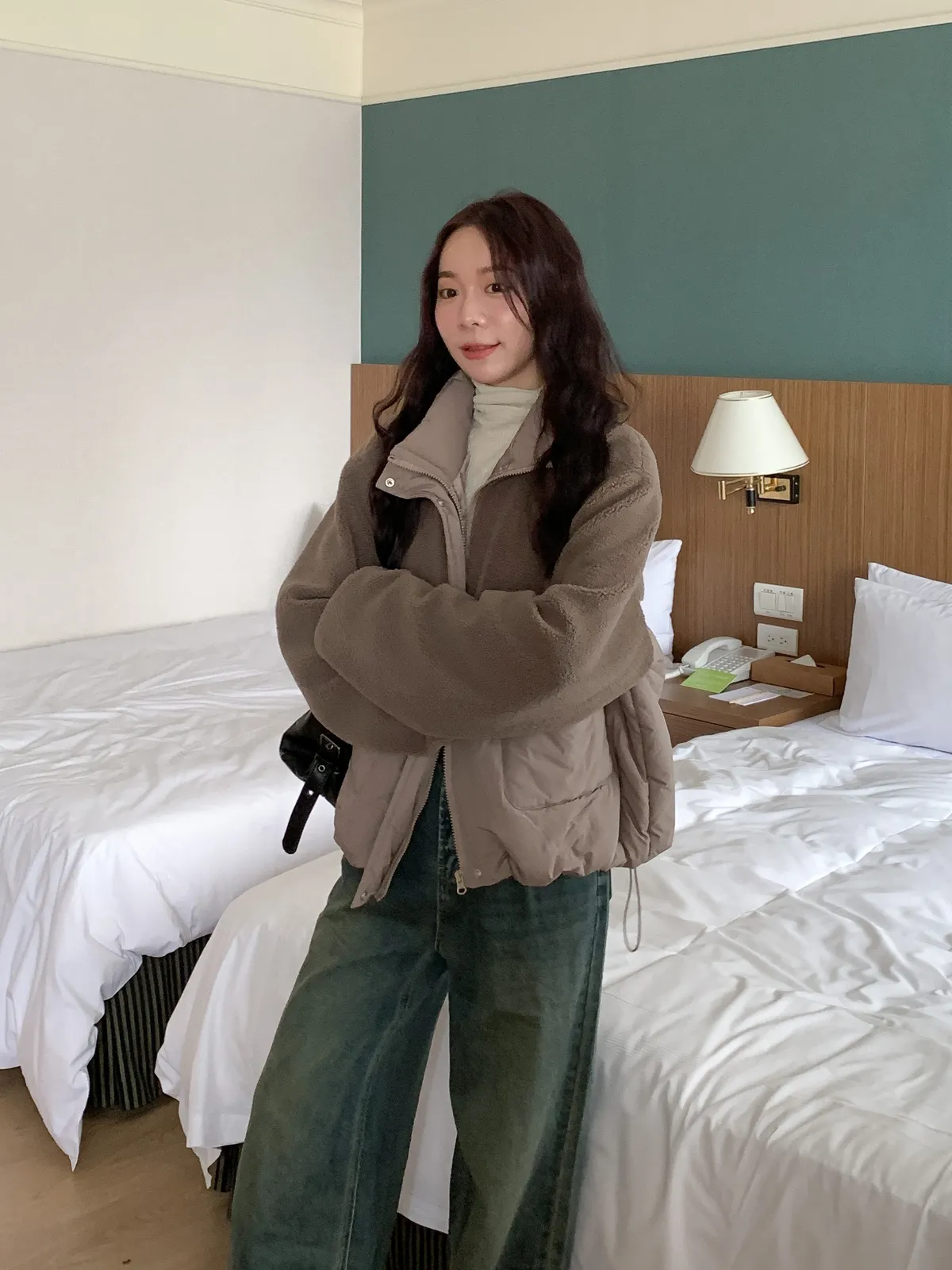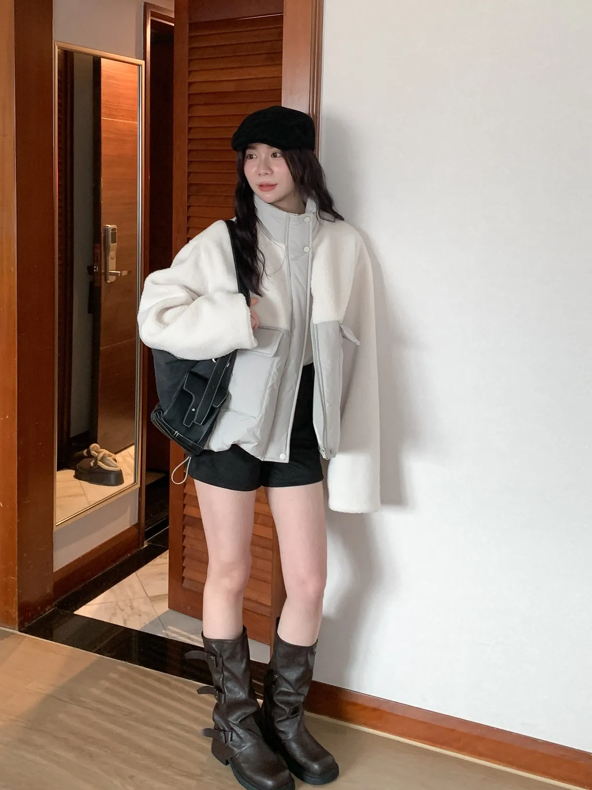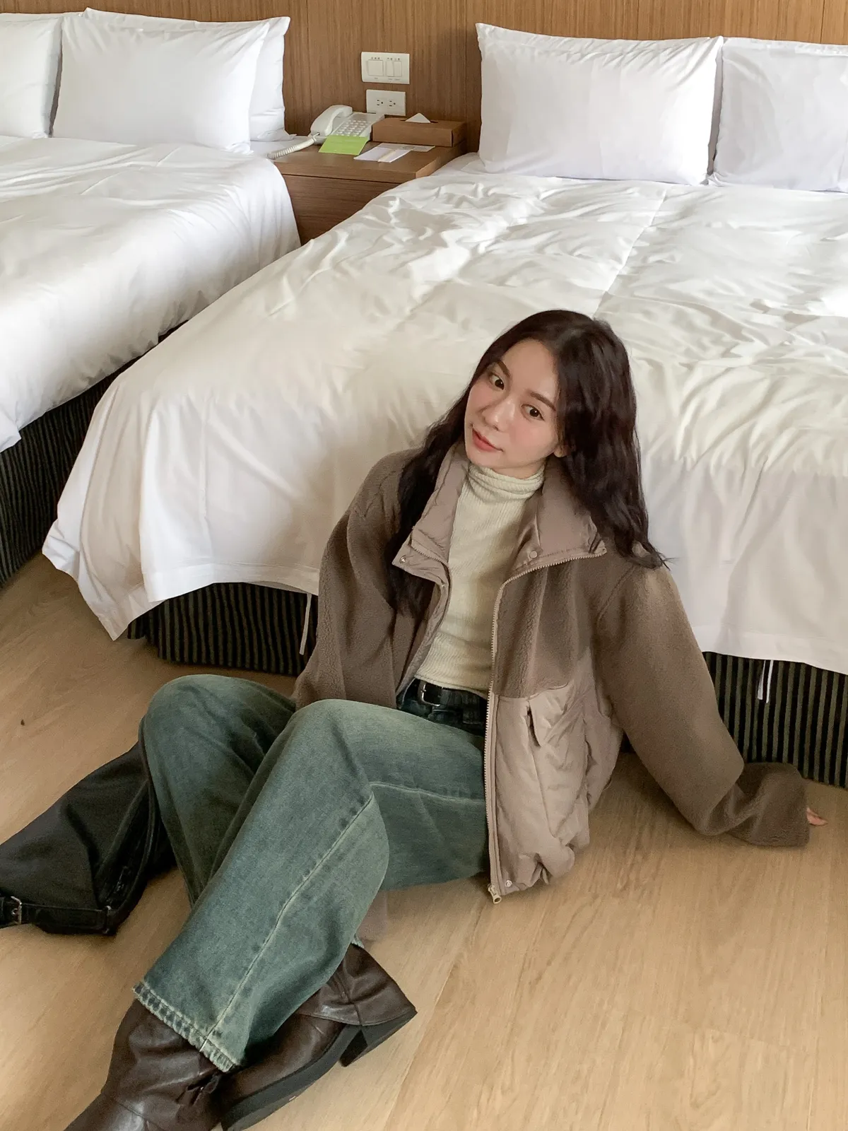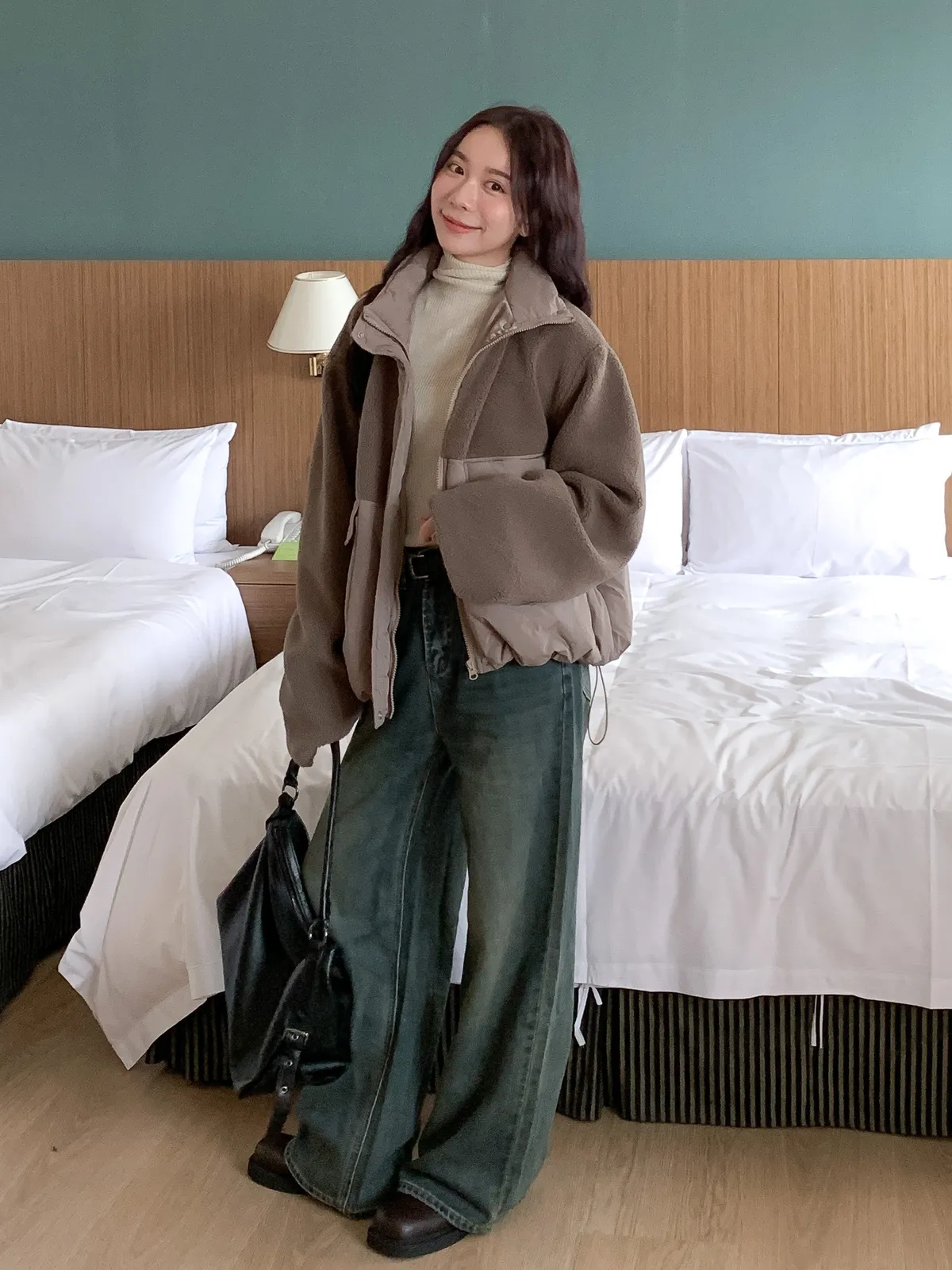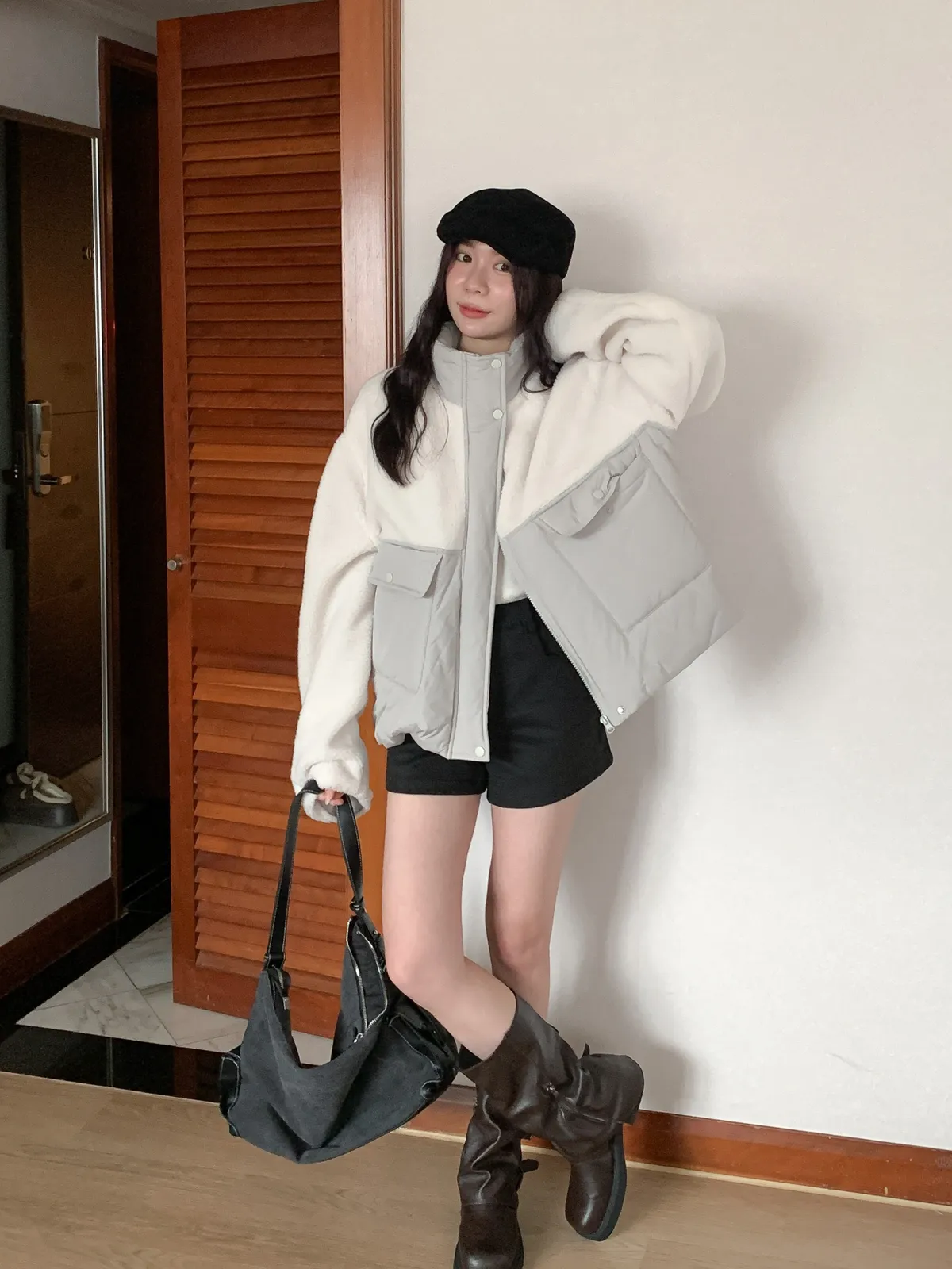 羊羔毛拼接異材質 拉鍊+四合扣雙重保暖