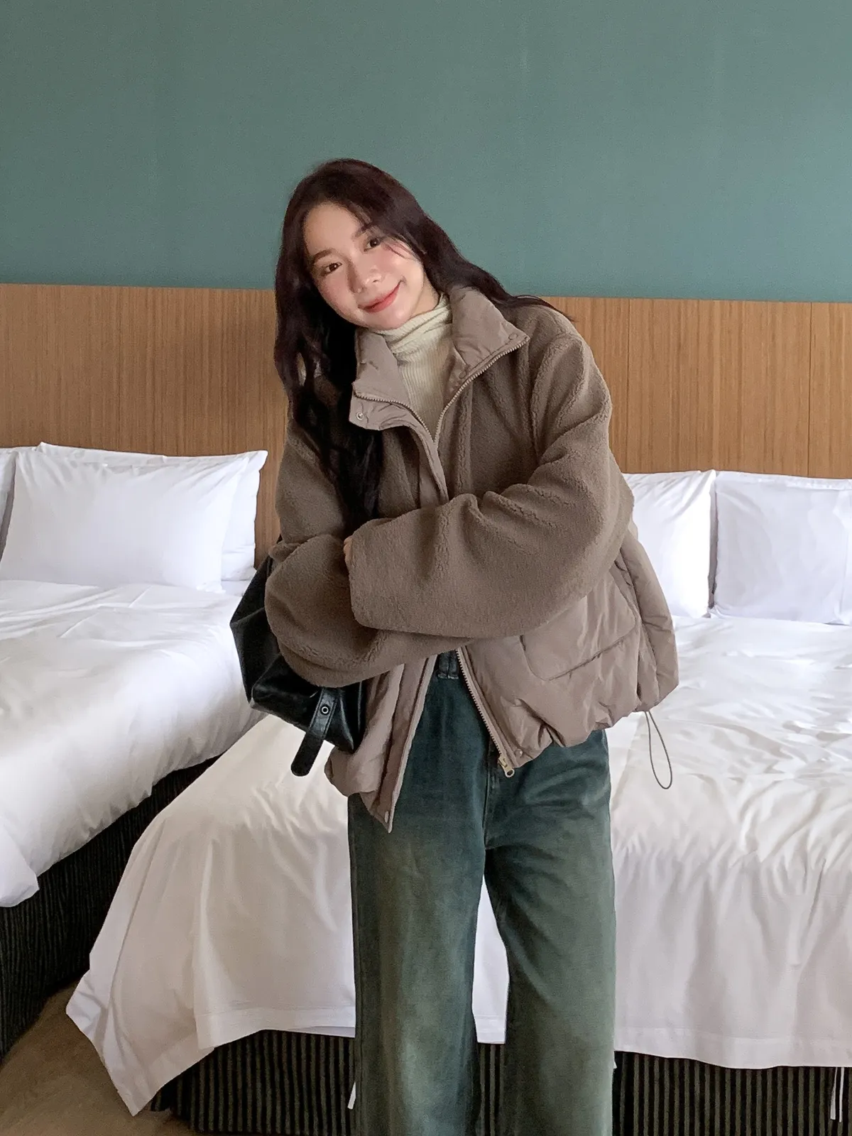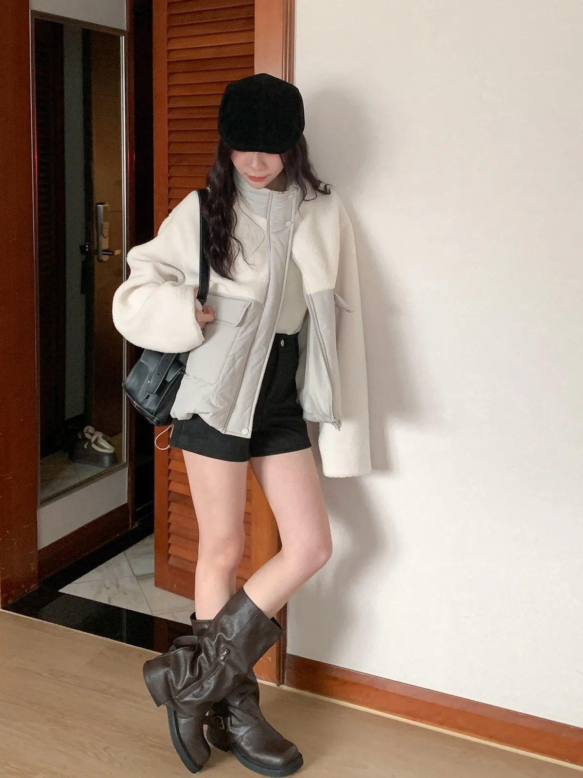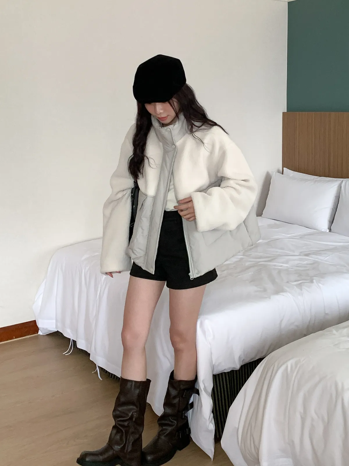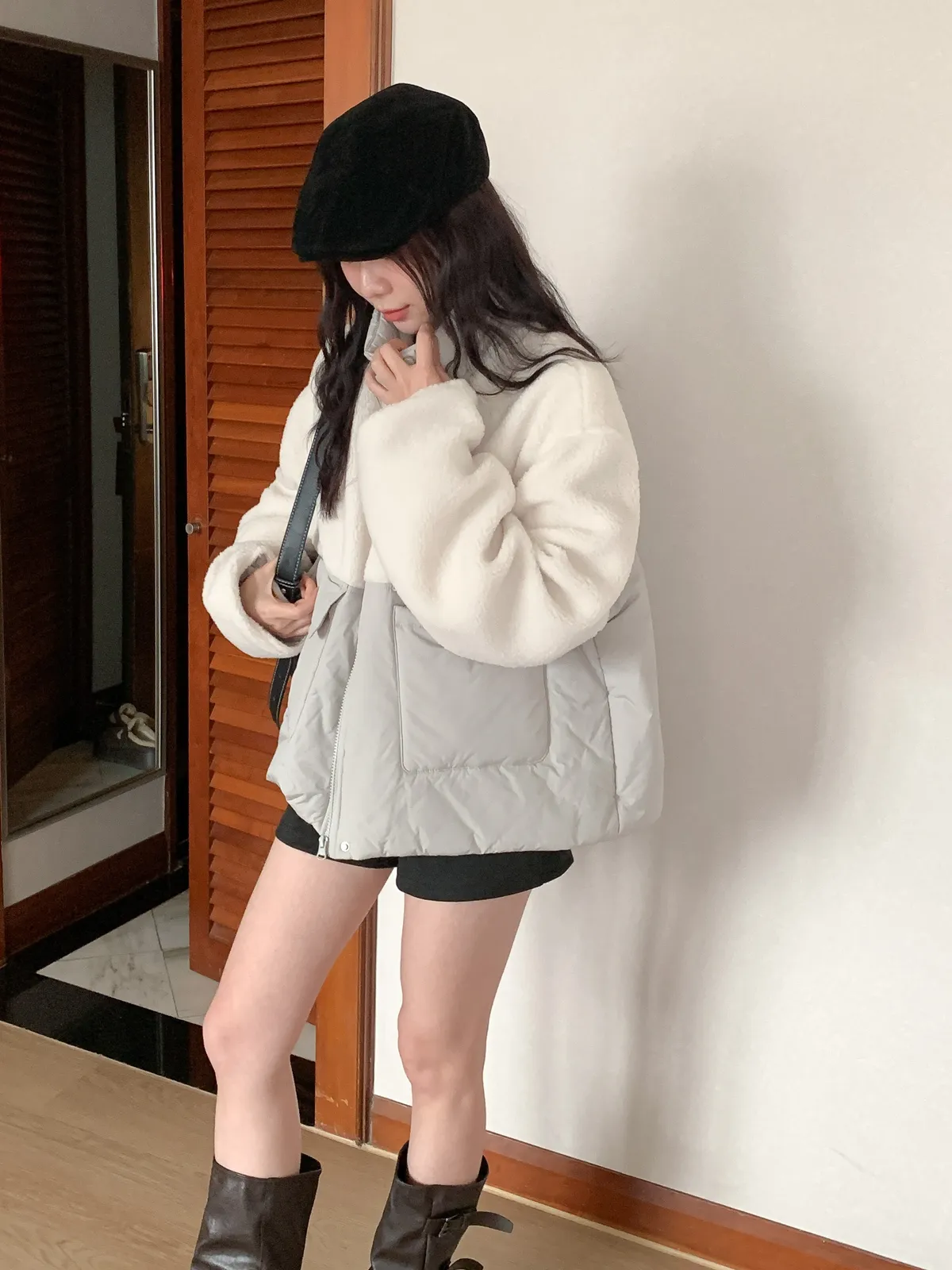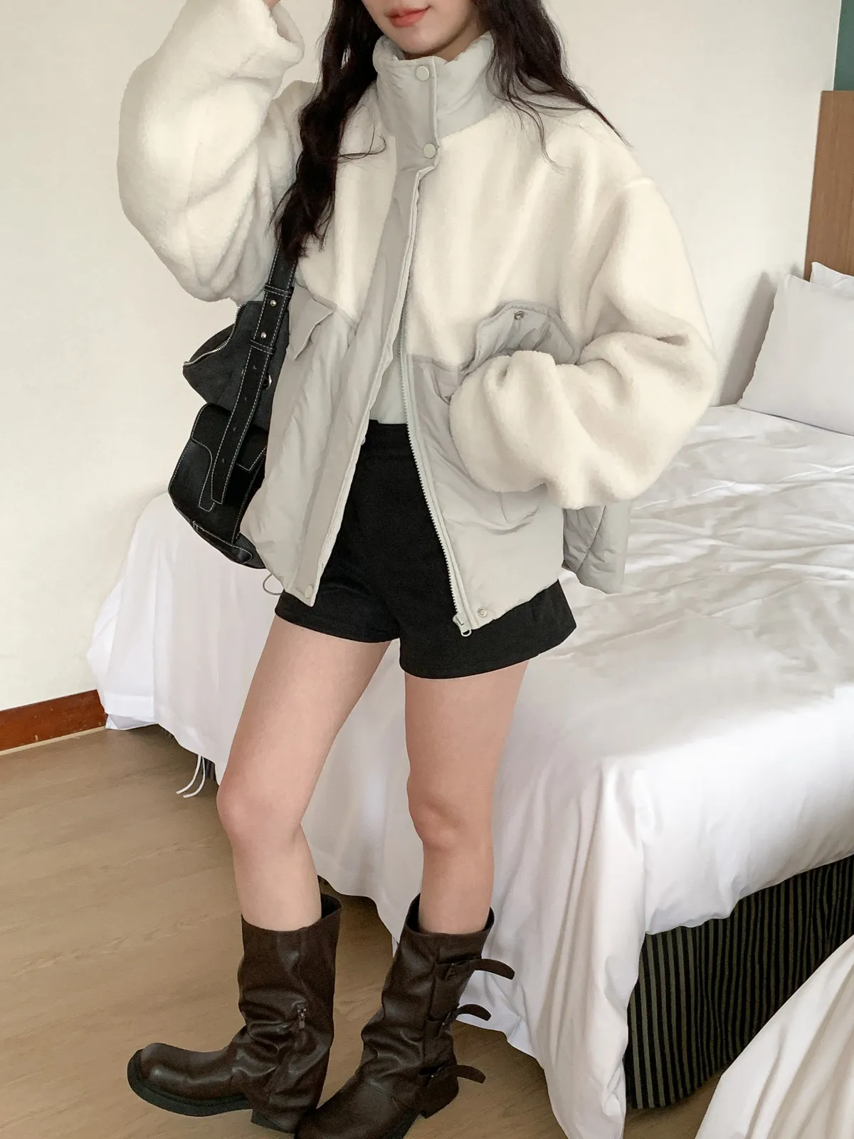 羊羔毛拼接異材質 拉鍊+四合扣雙重保暖