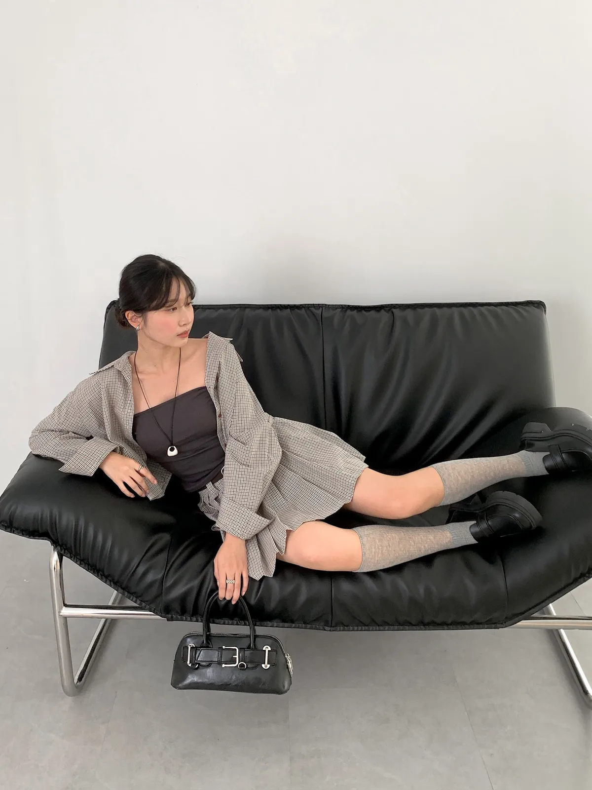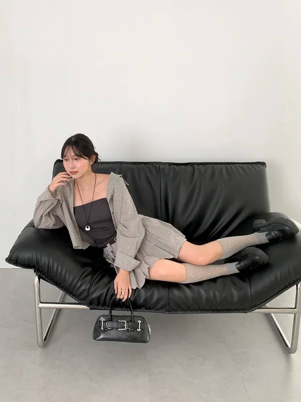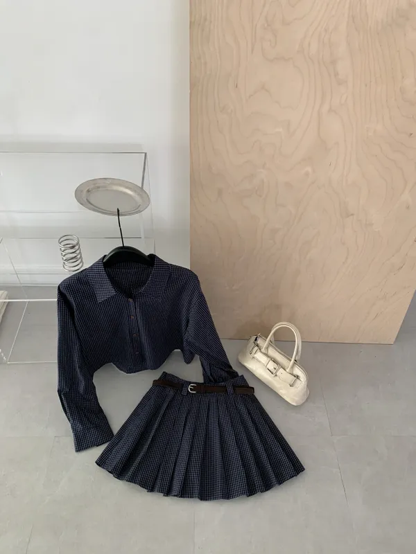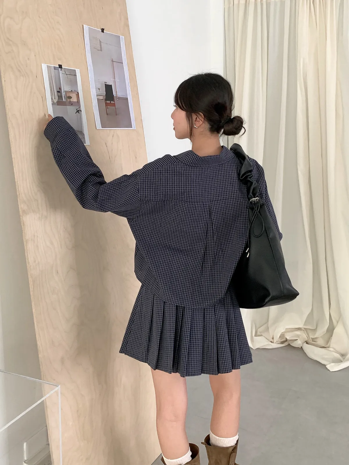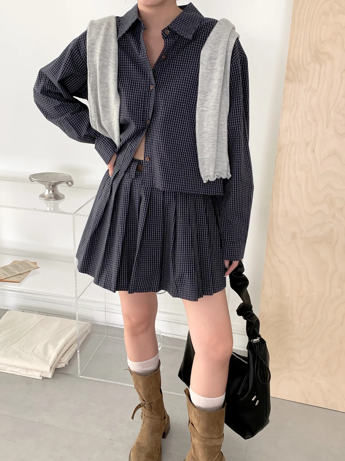 浪漫倫敦|復古感細格紋短版襯衫套裝
