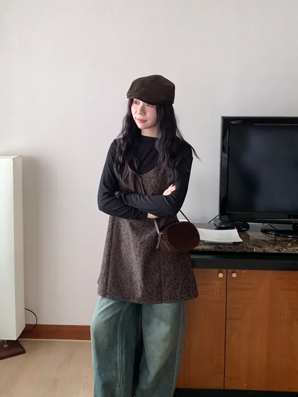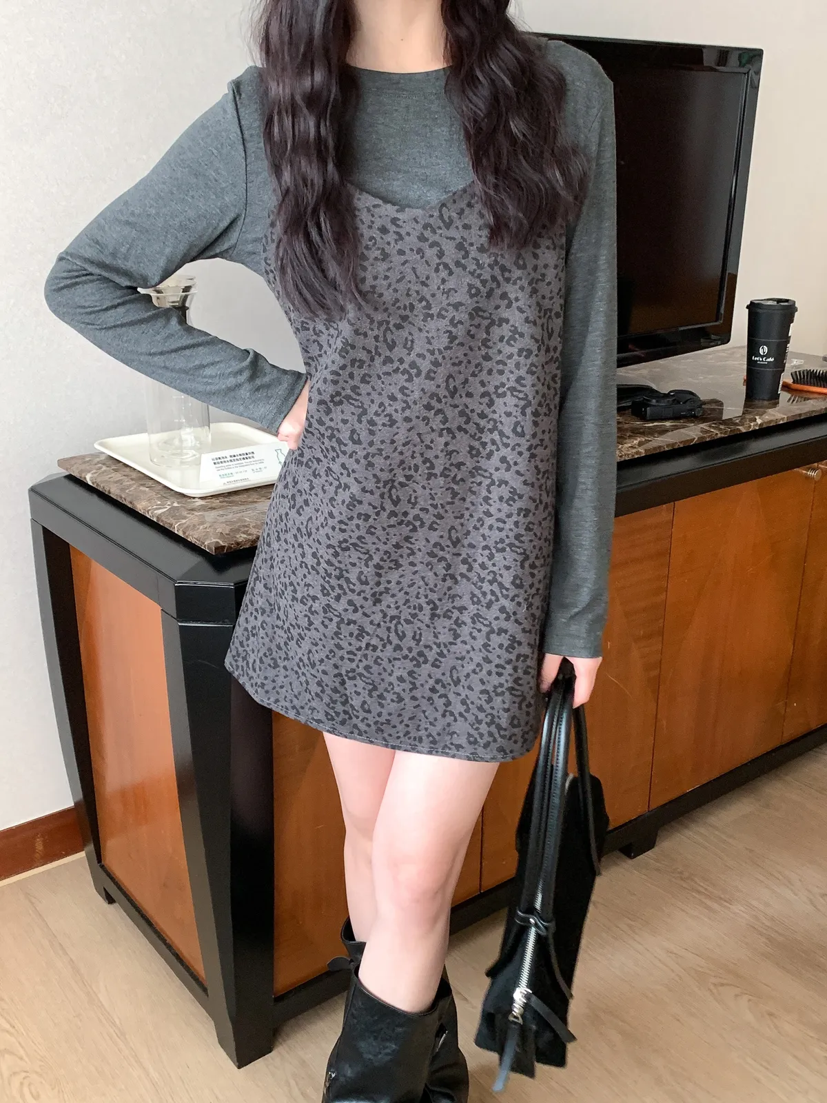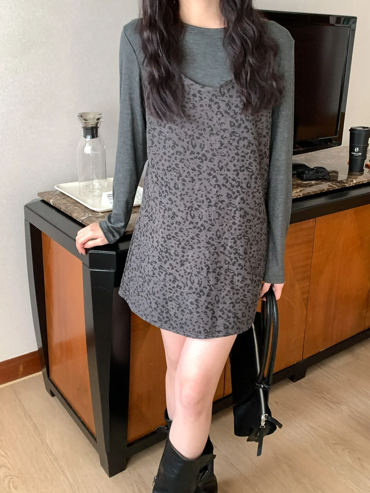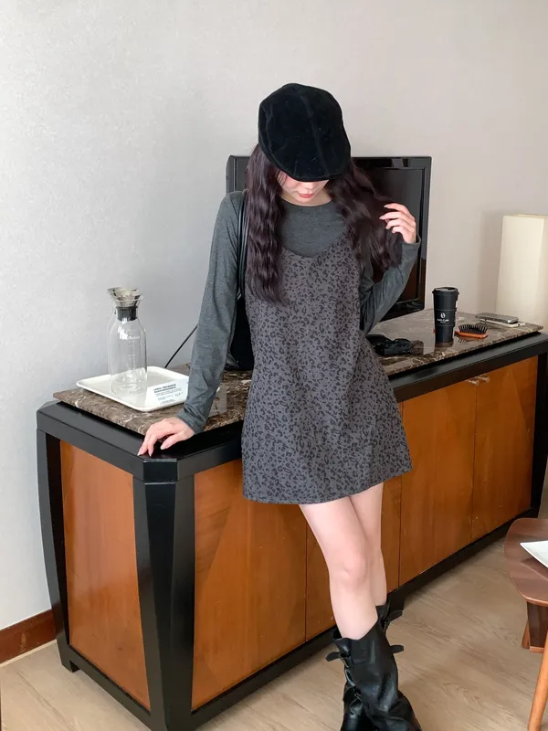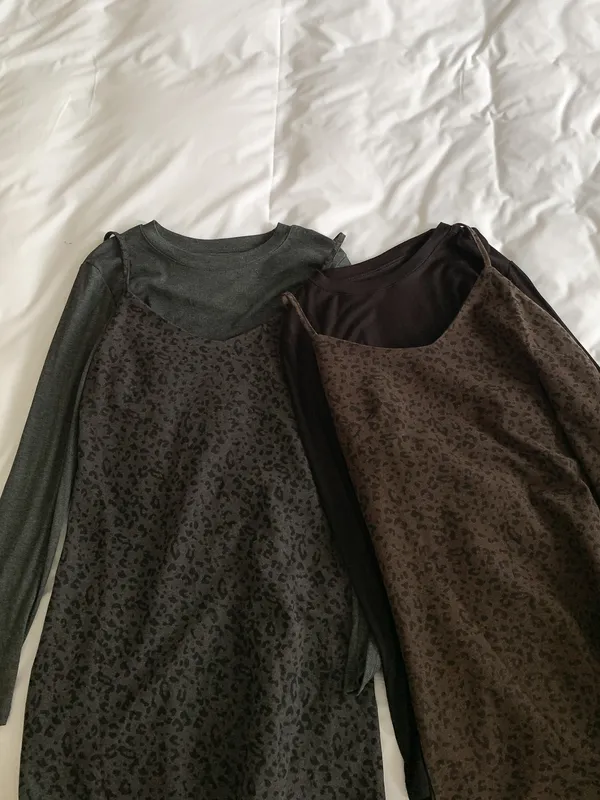 甜酷冬日|1+1真兩件豹紋洋裝