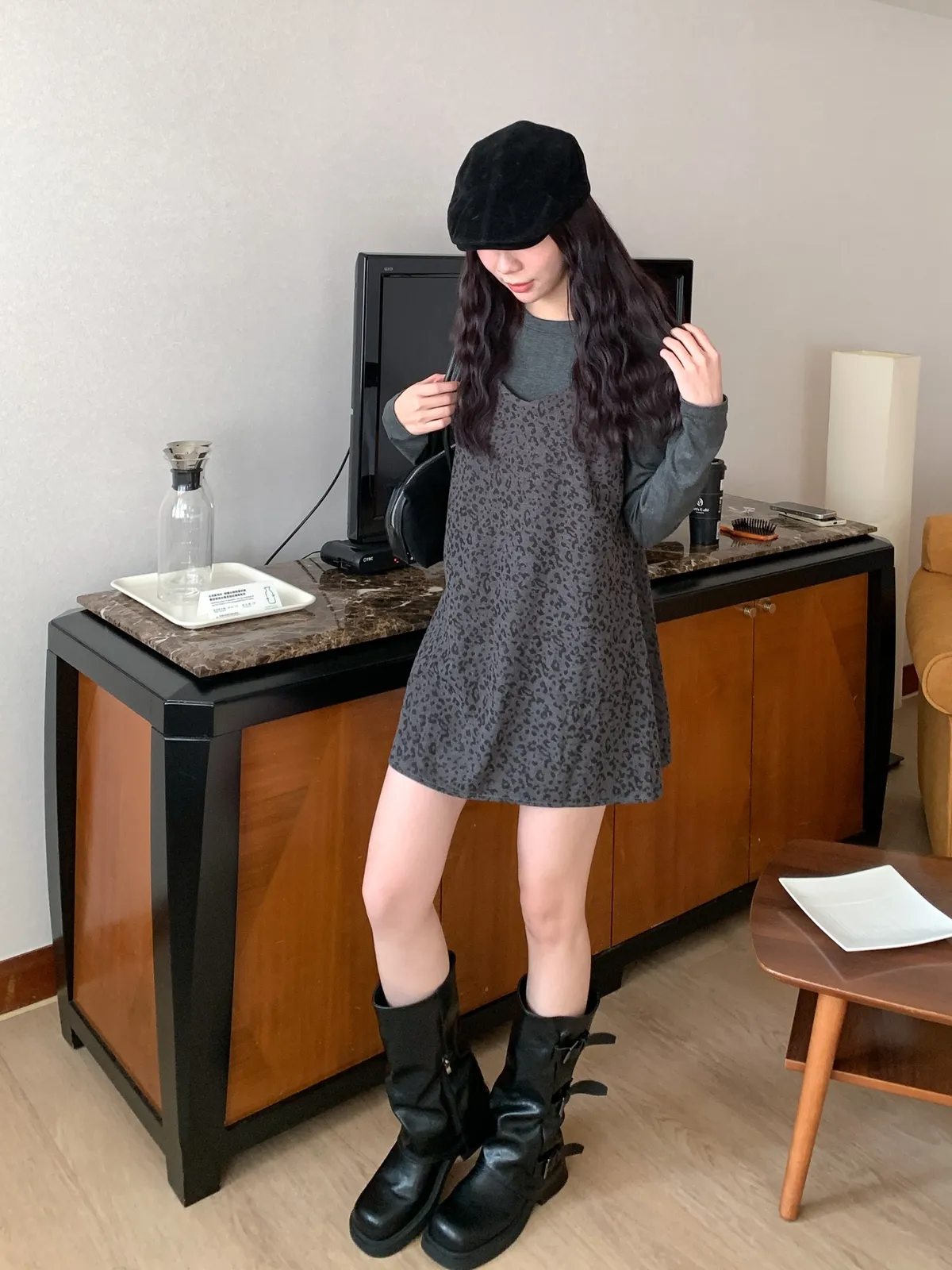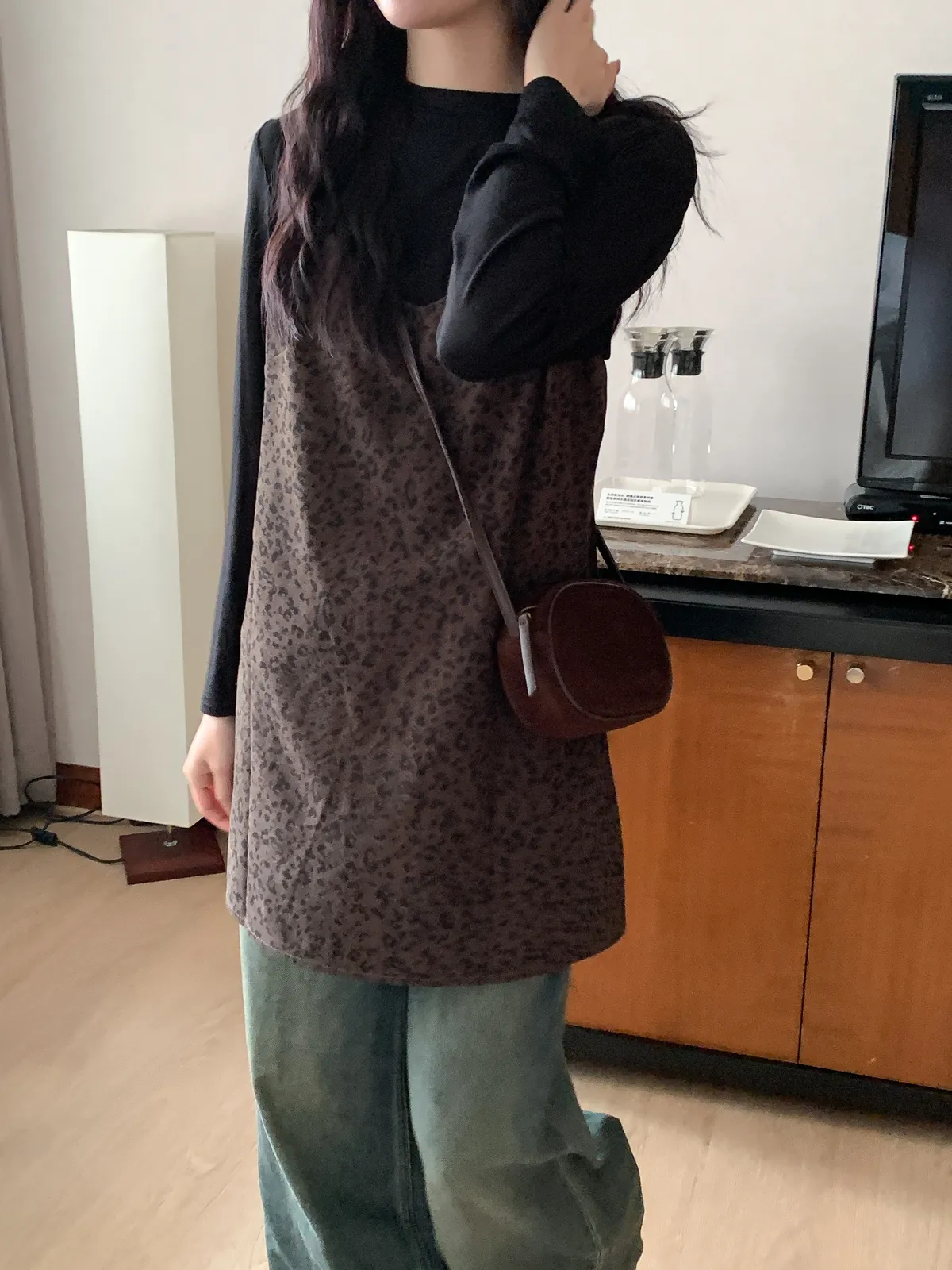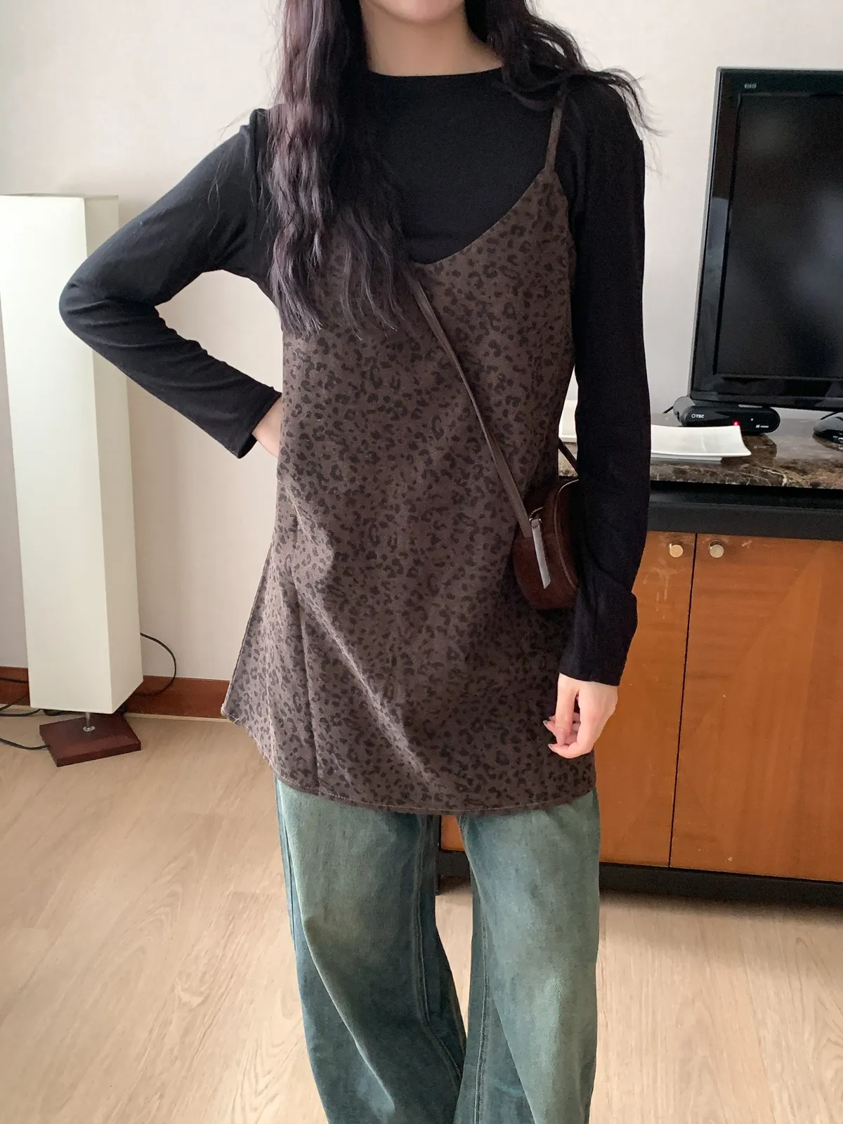 甜酷冬日|1+1真兩件豹紋洋裝