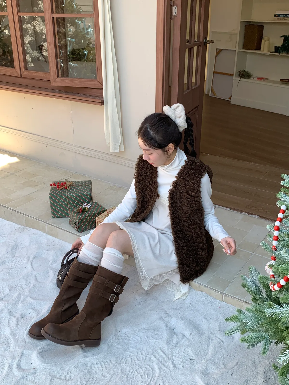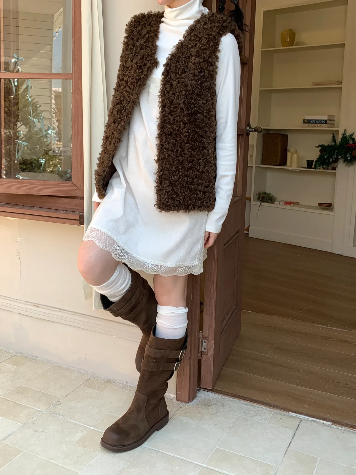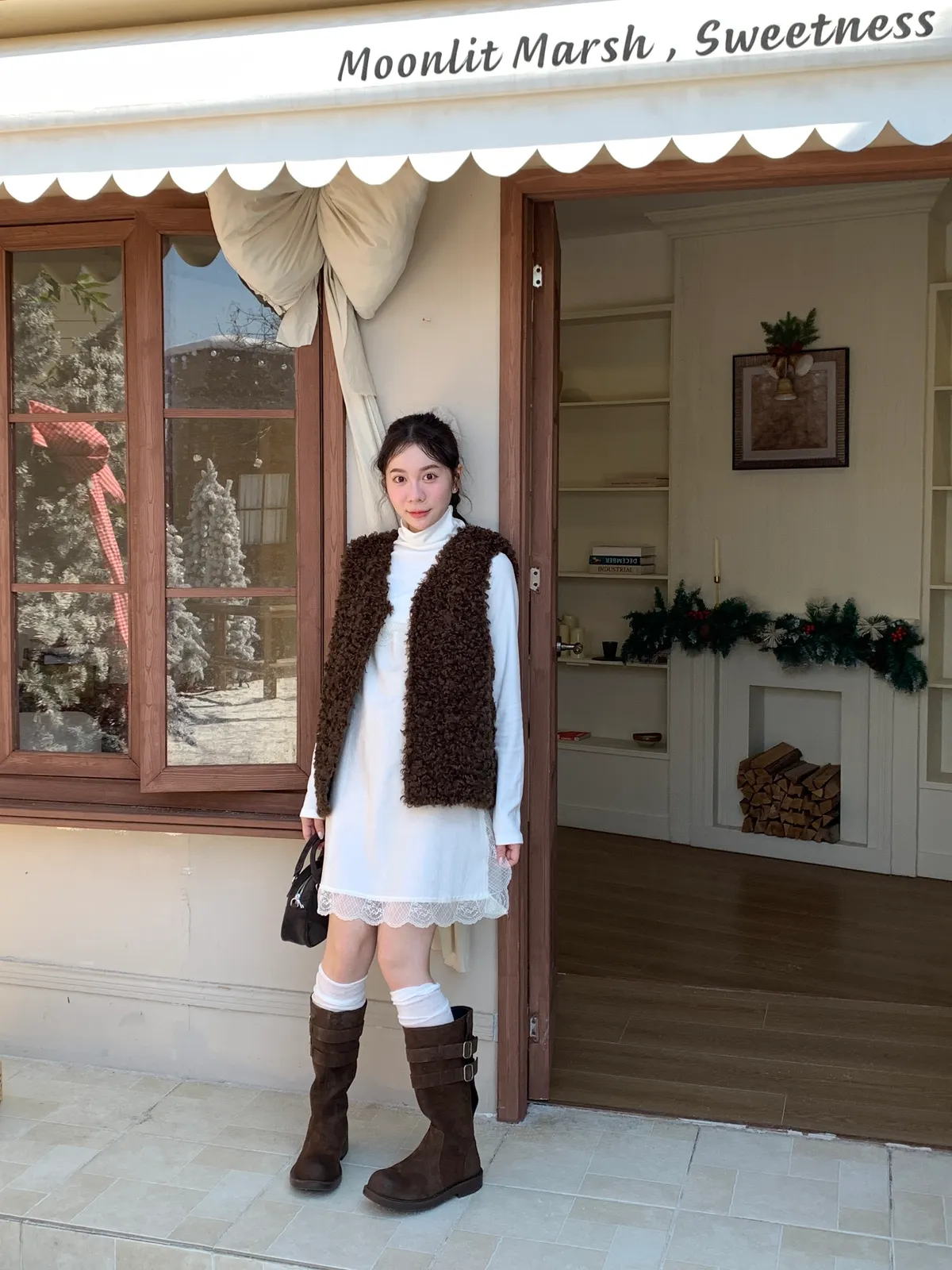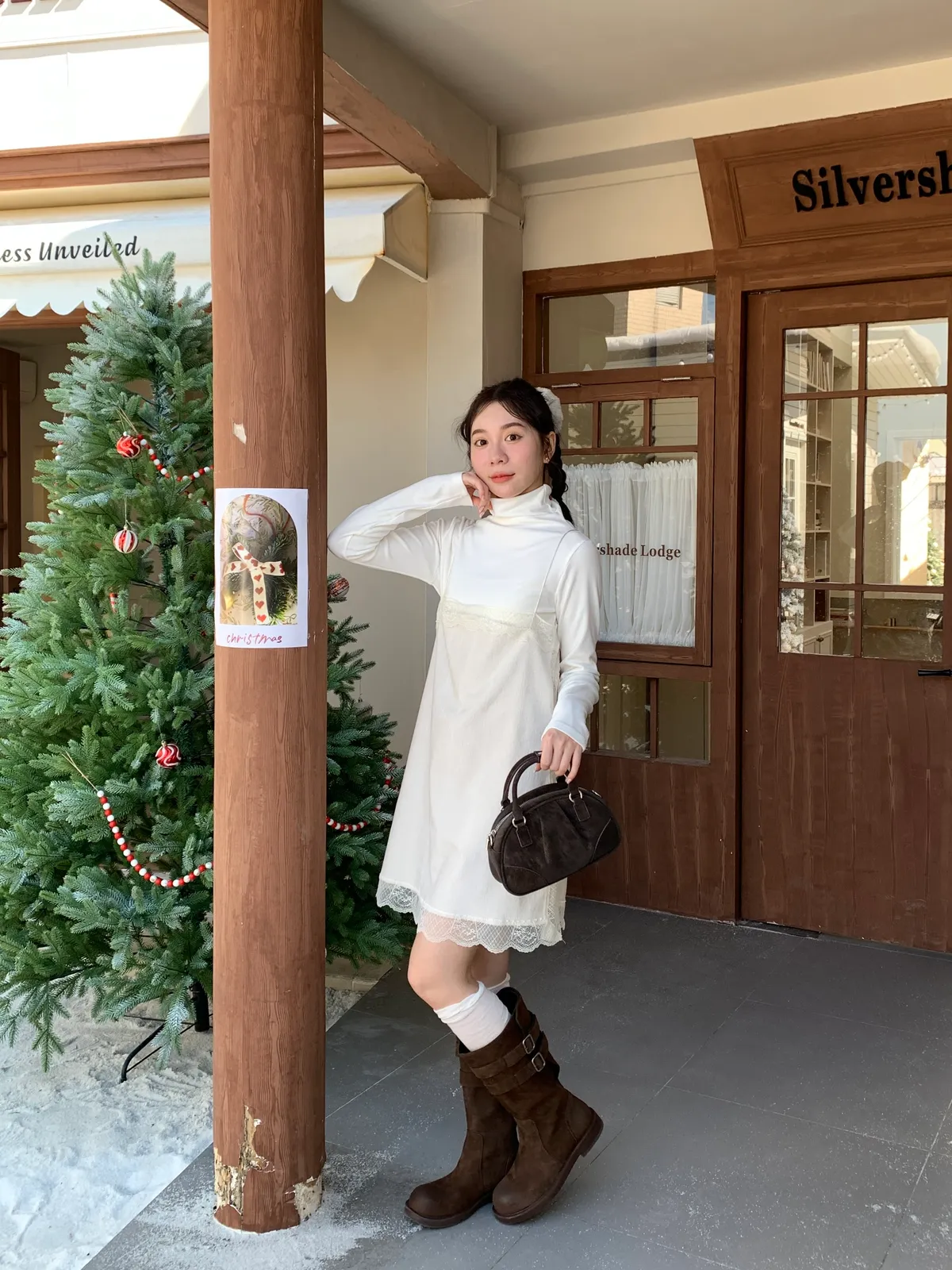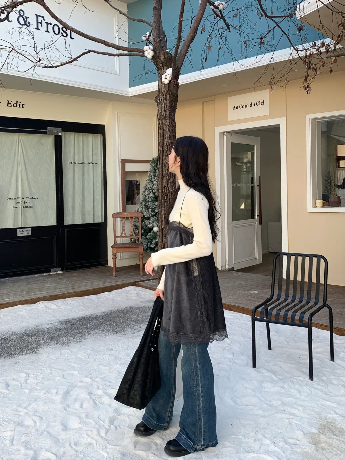 怦然心動|蕾絲拼接絲絨感細肩短洋裝