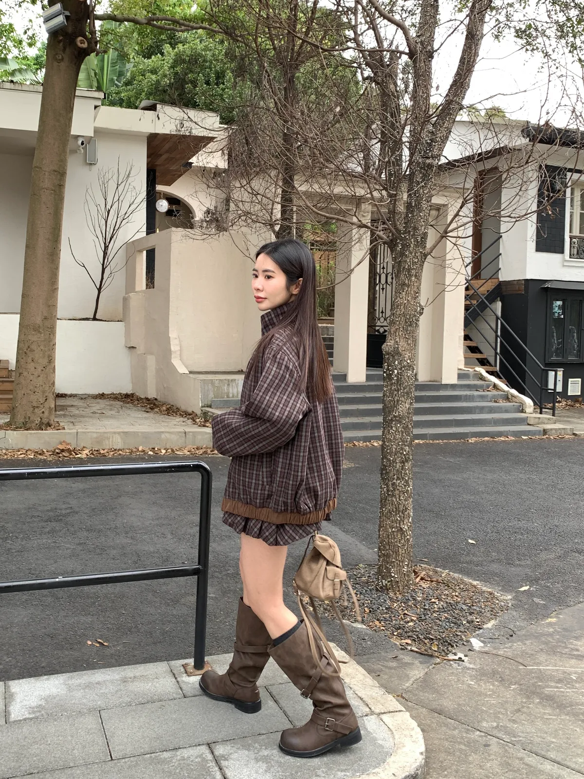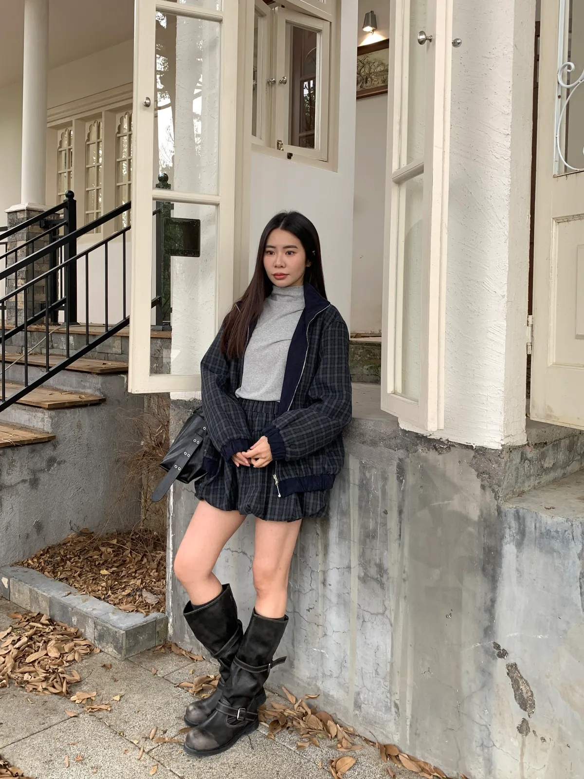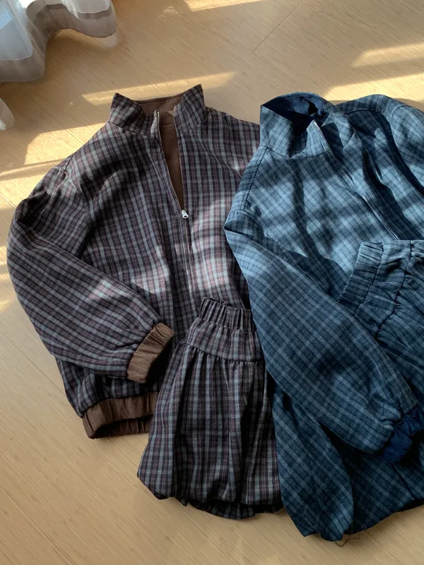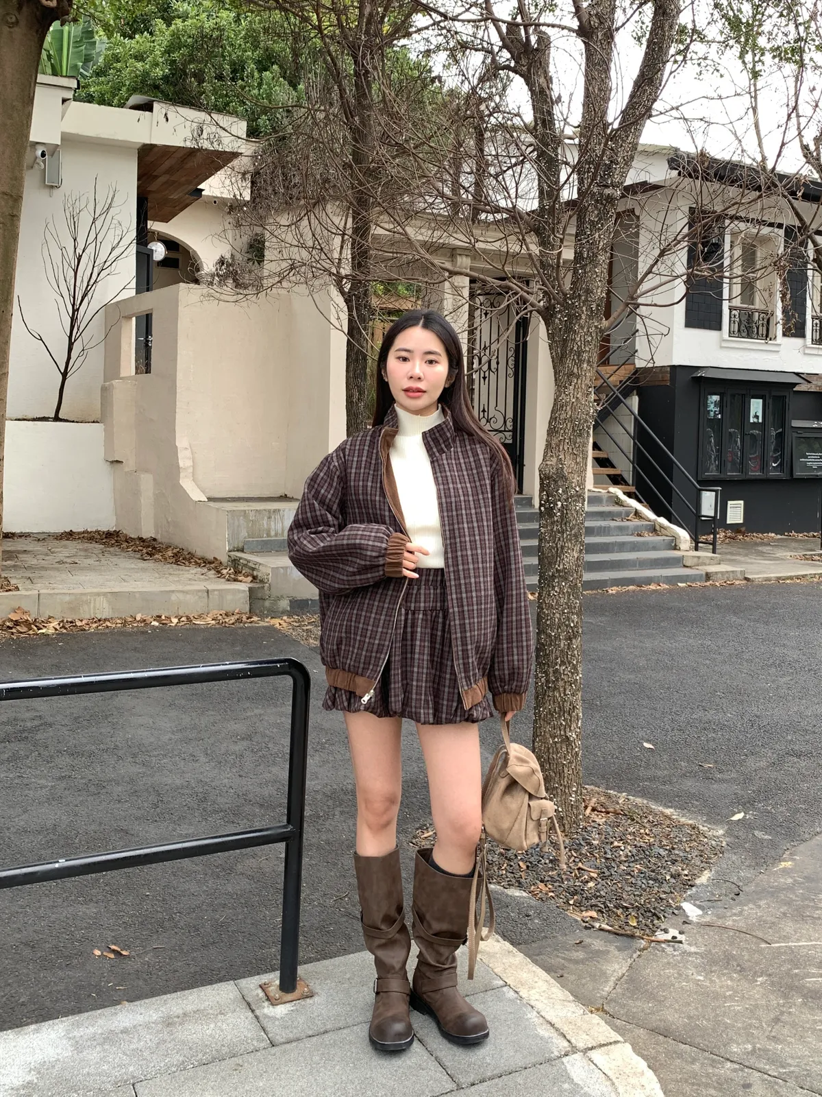 格紋拉鍊外套[F] 64 57 47.5 X X