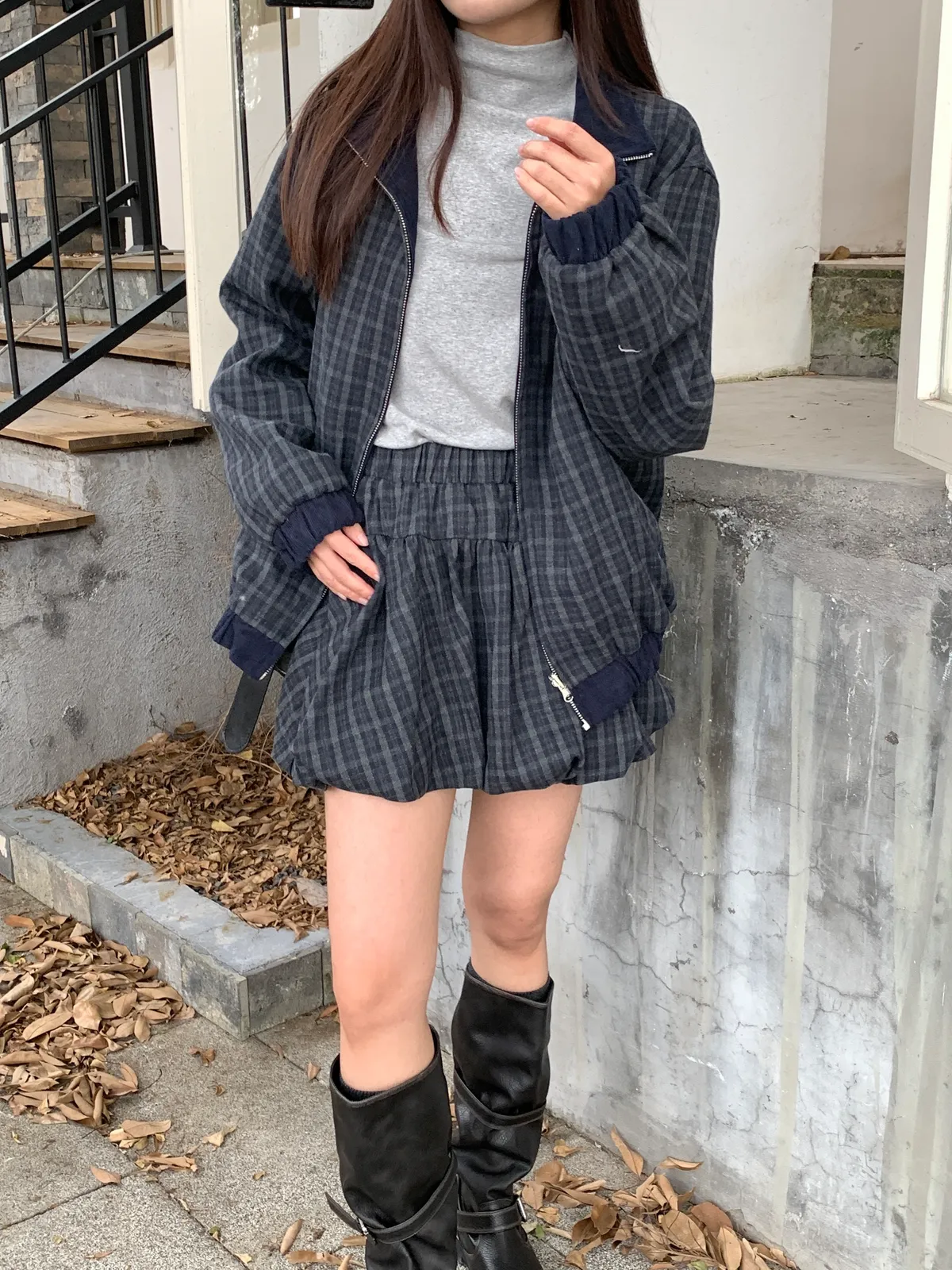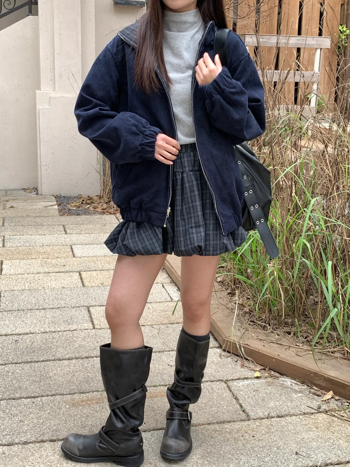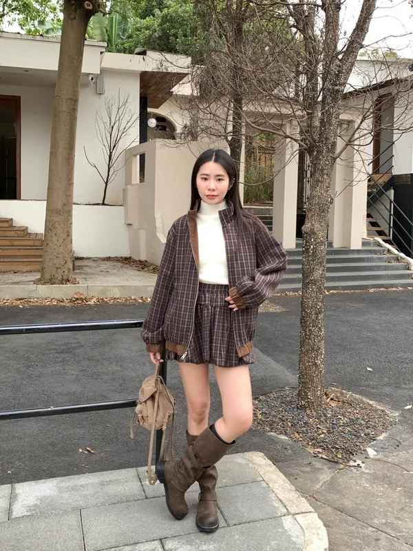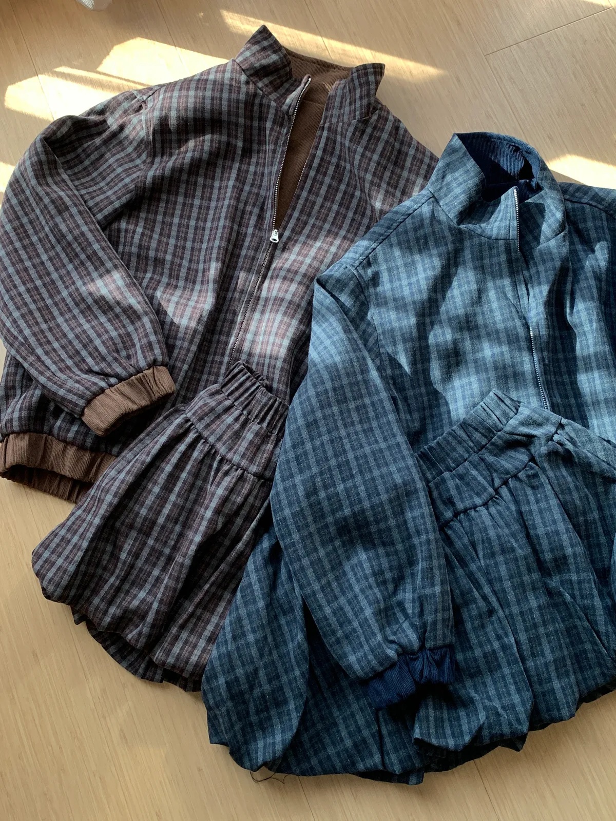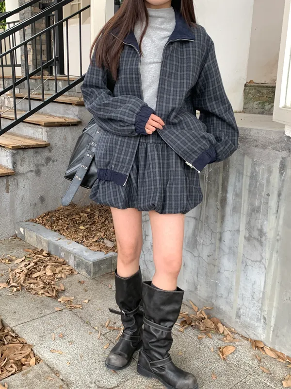 格紋拉鍊外套[F] 64 57 47.5 X X