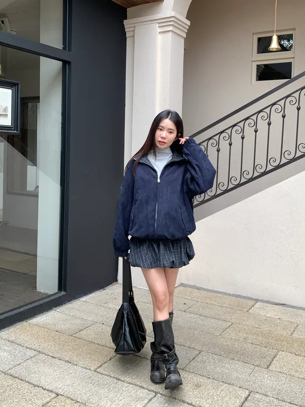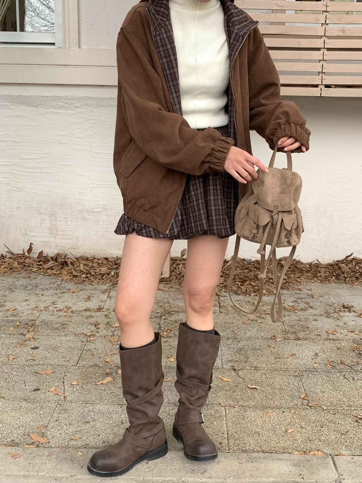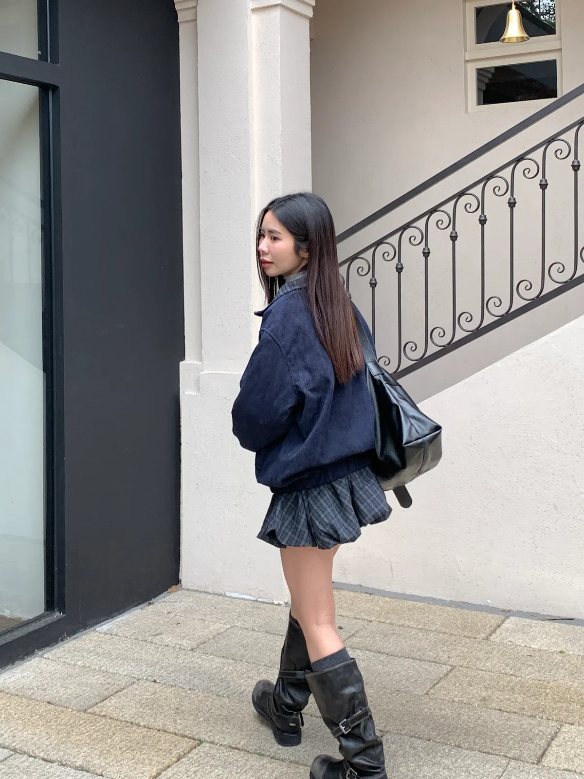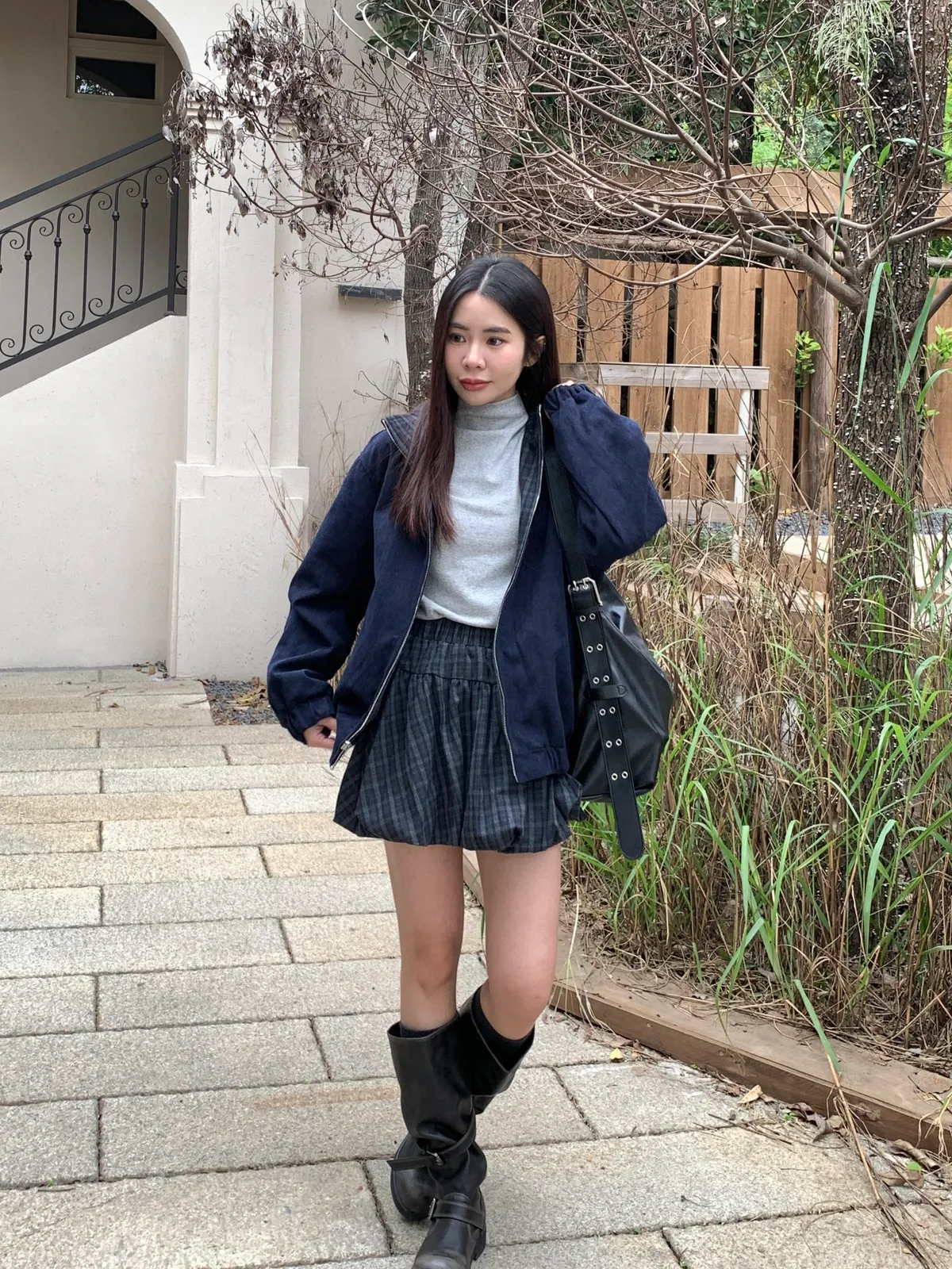 格紋拉鍊外套[F] 64 57 47.5 X X