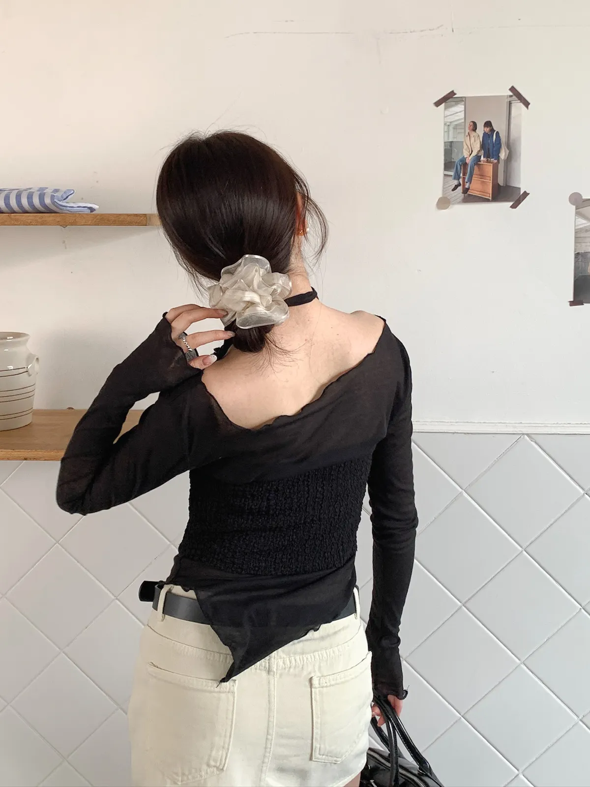 (建議可以先用細髮圈先綁一次 再套髮圈上去會更挺唷)