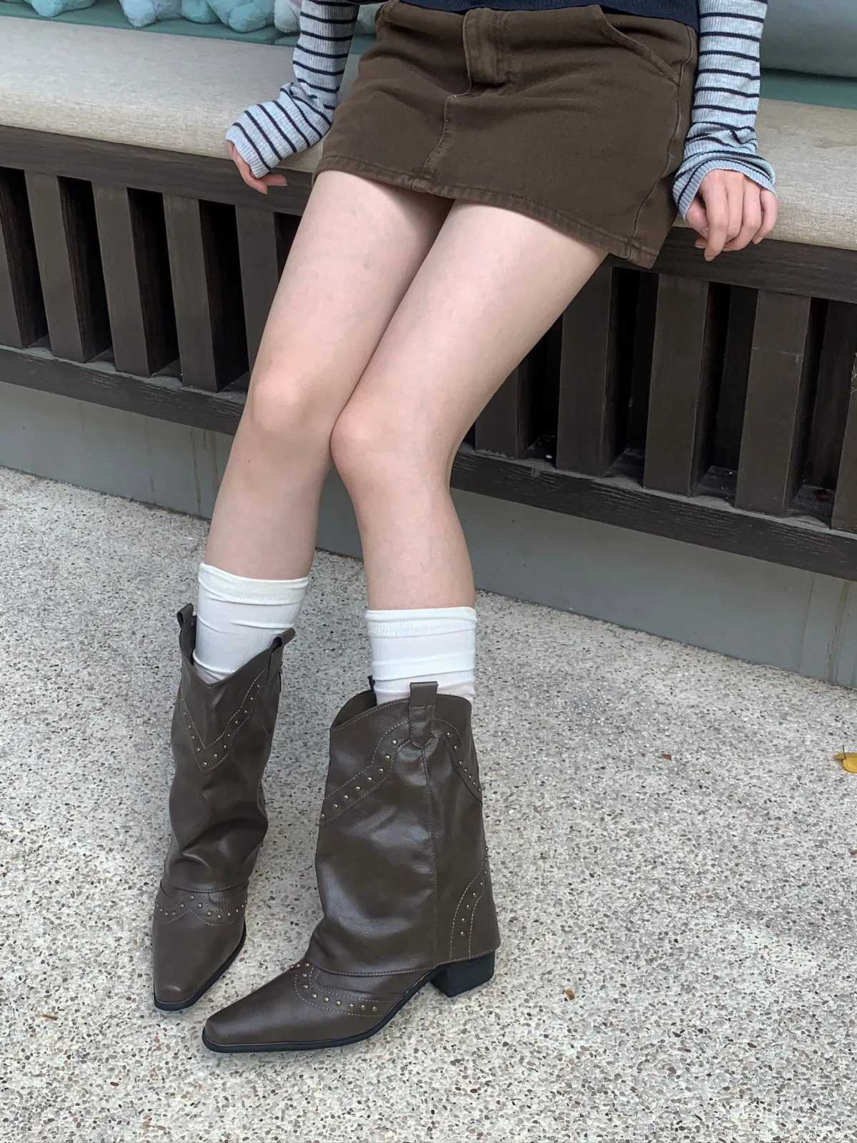 復古小眾鉚釘中筒靴