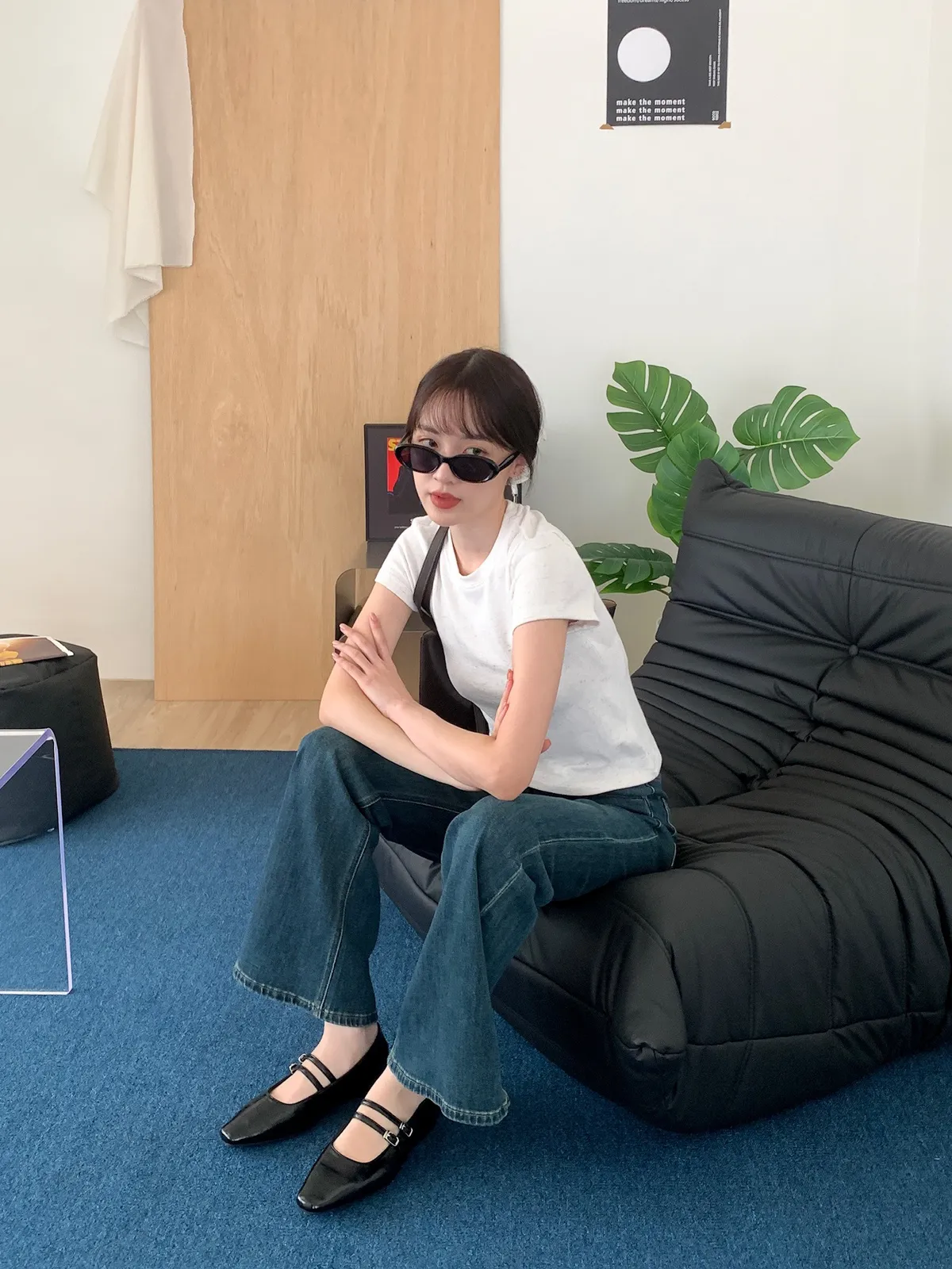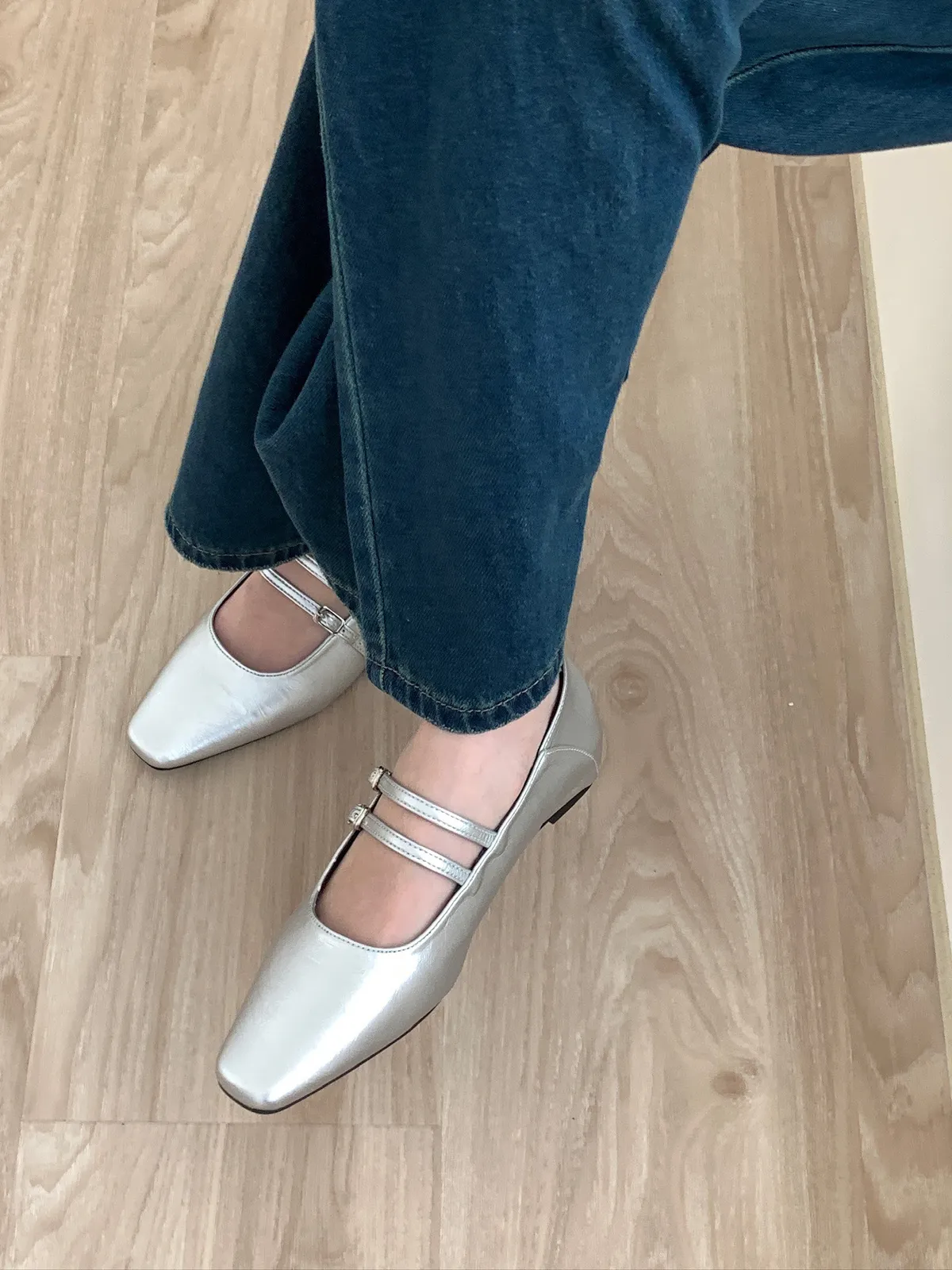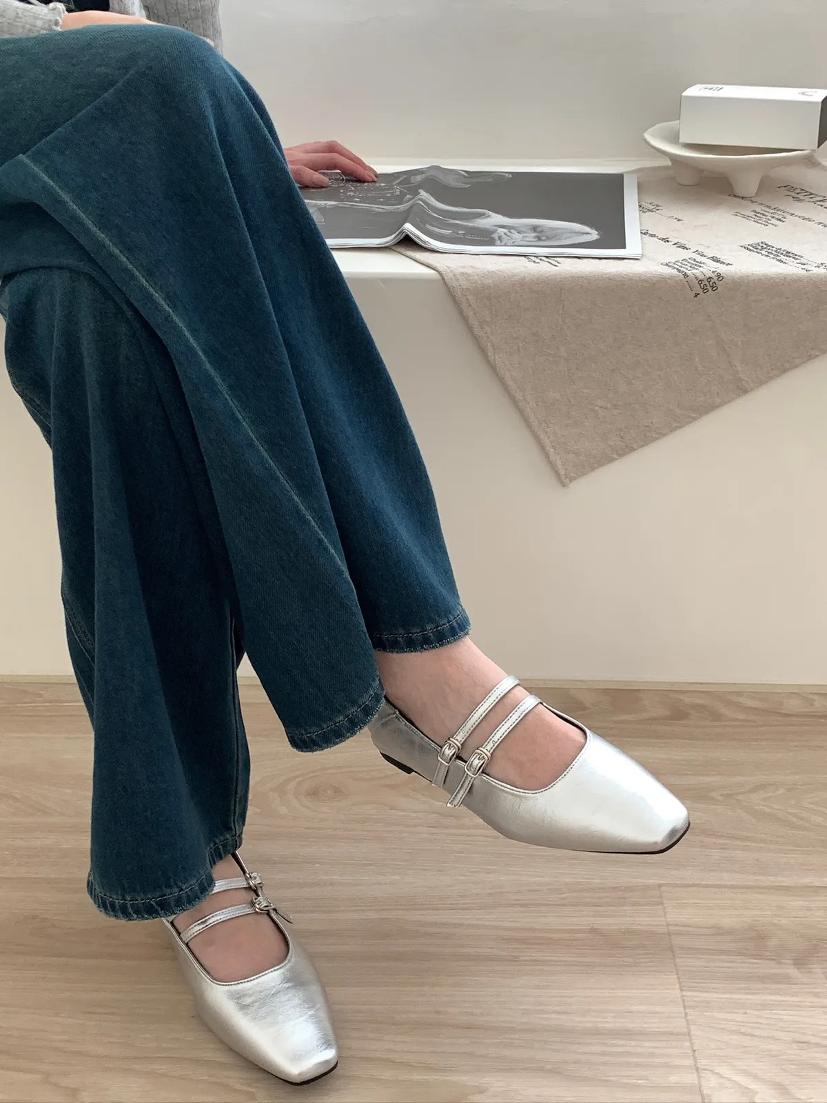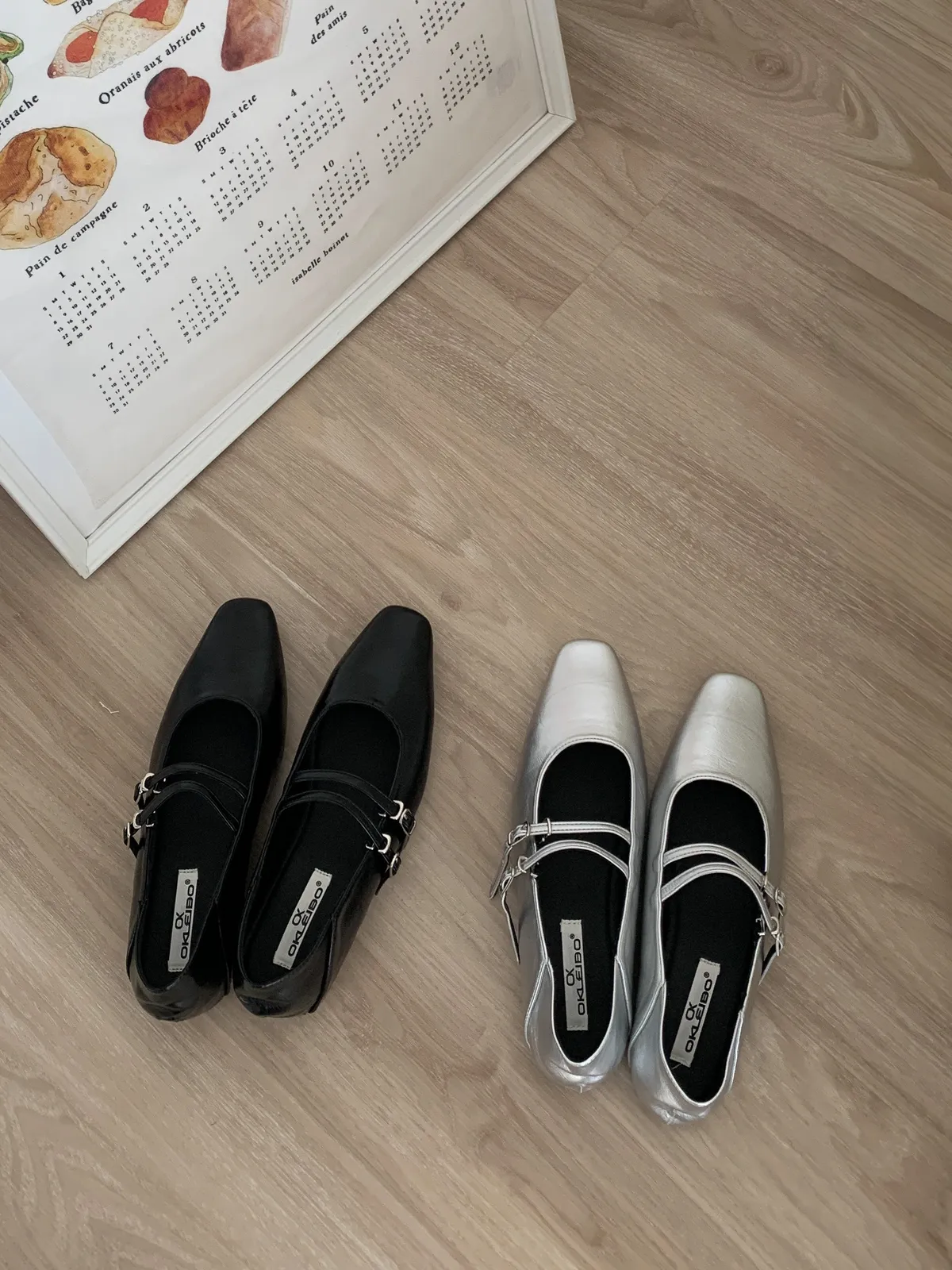 方頭芭蕾鞋頭造型 兩條鞋帶釦設計