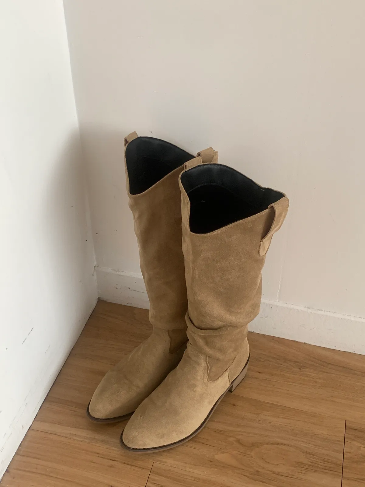 堆疊粗跟尖頭長靴