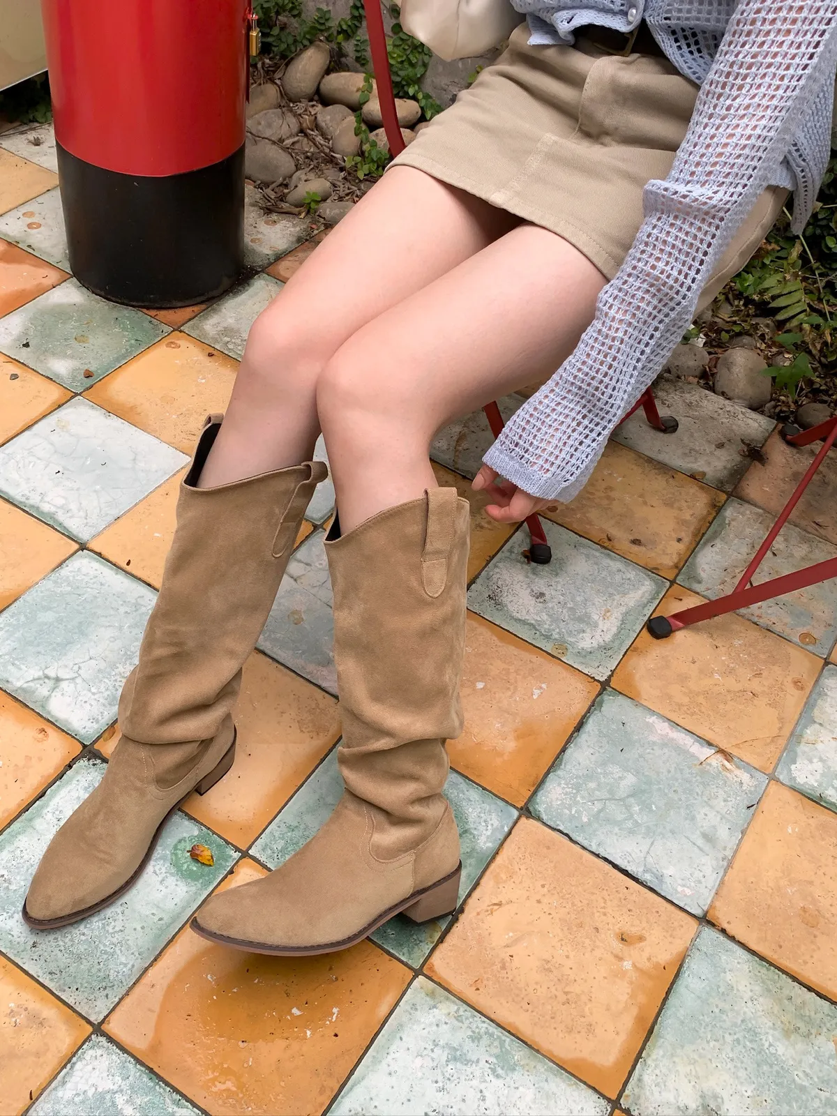 牧野沙丘|堆疊粗跟尖頭長靴