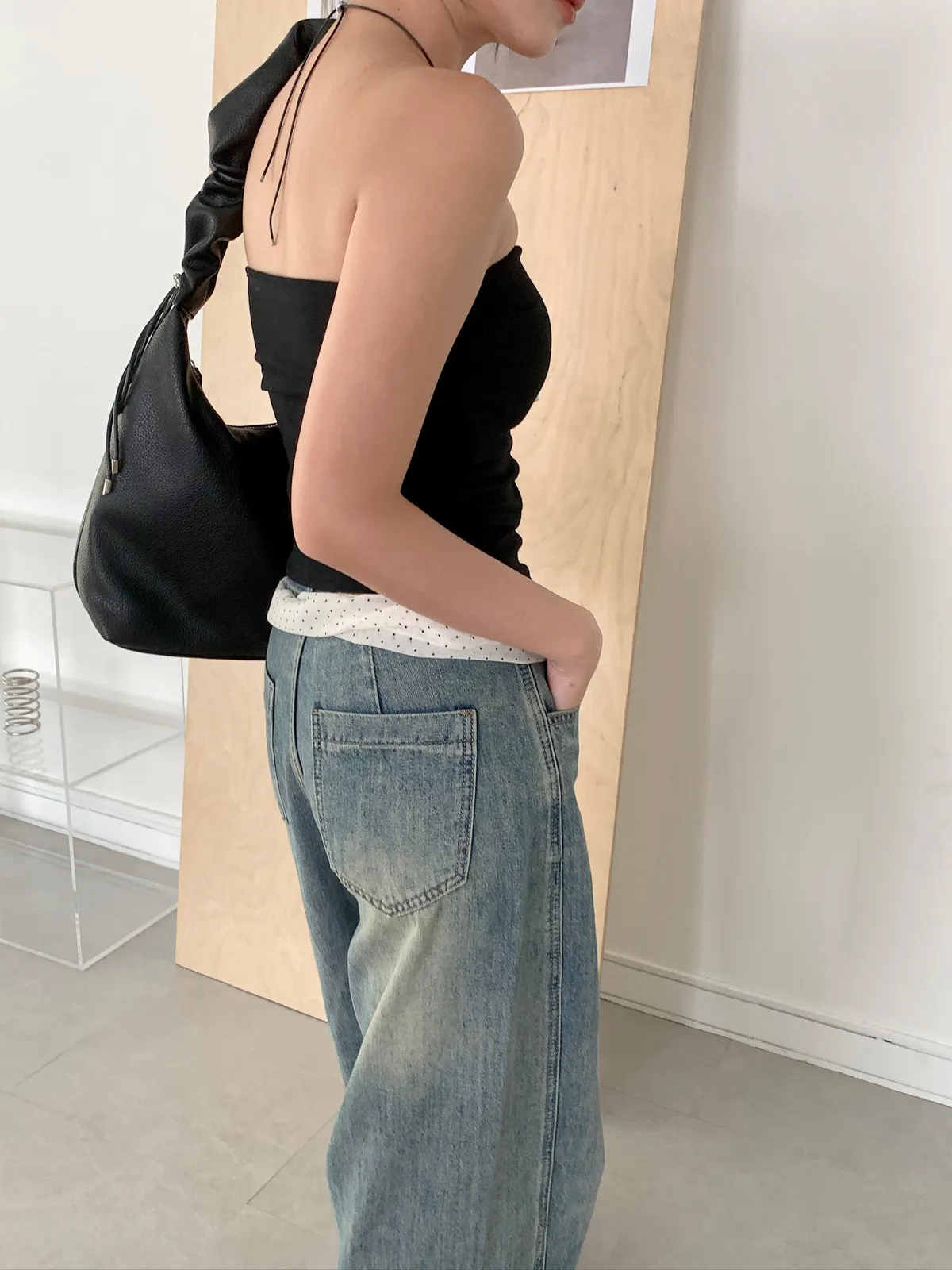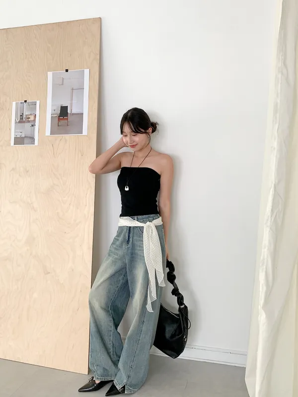 偷偷停留的目光!百搭素面彈力抹胸背心