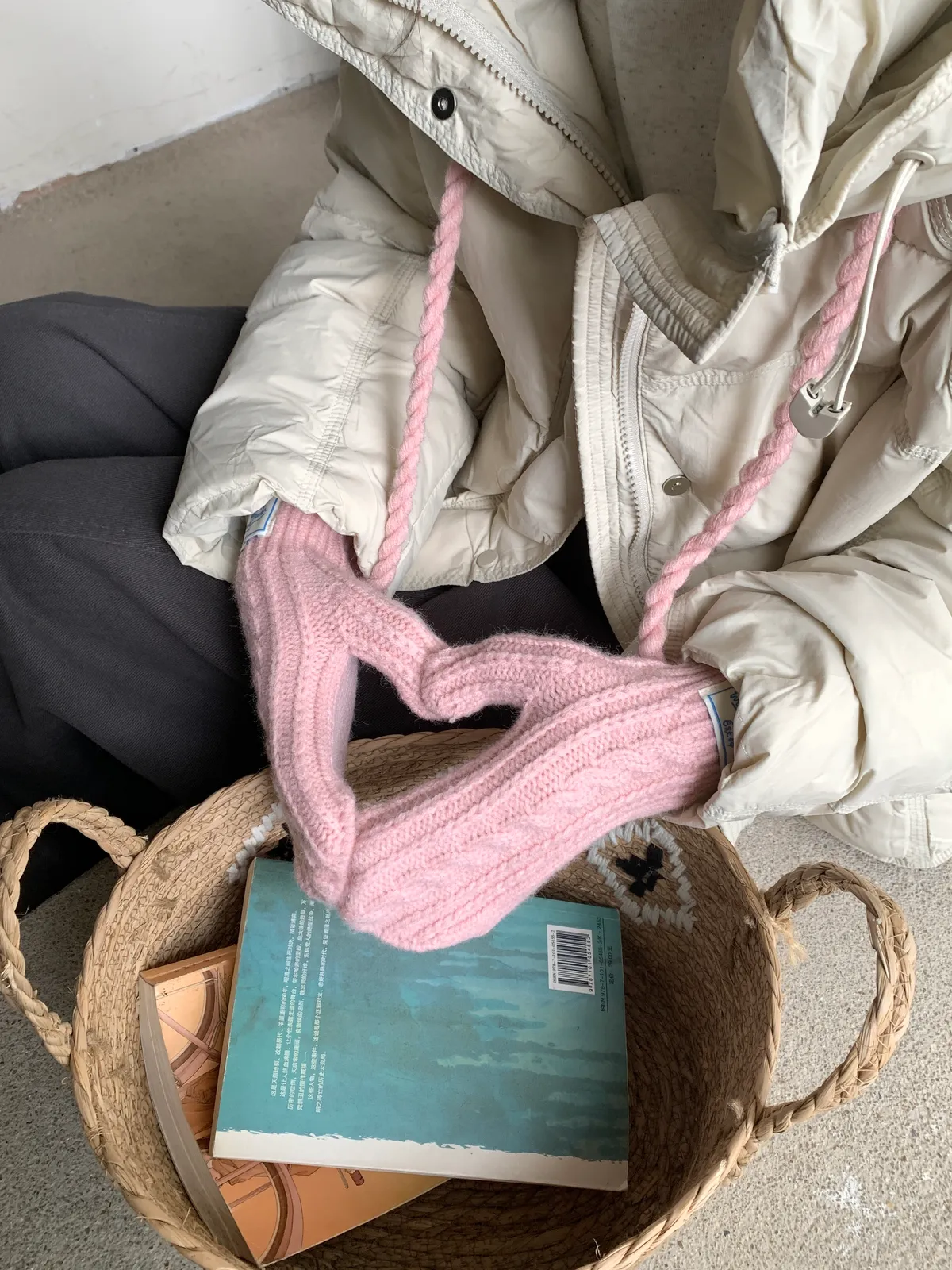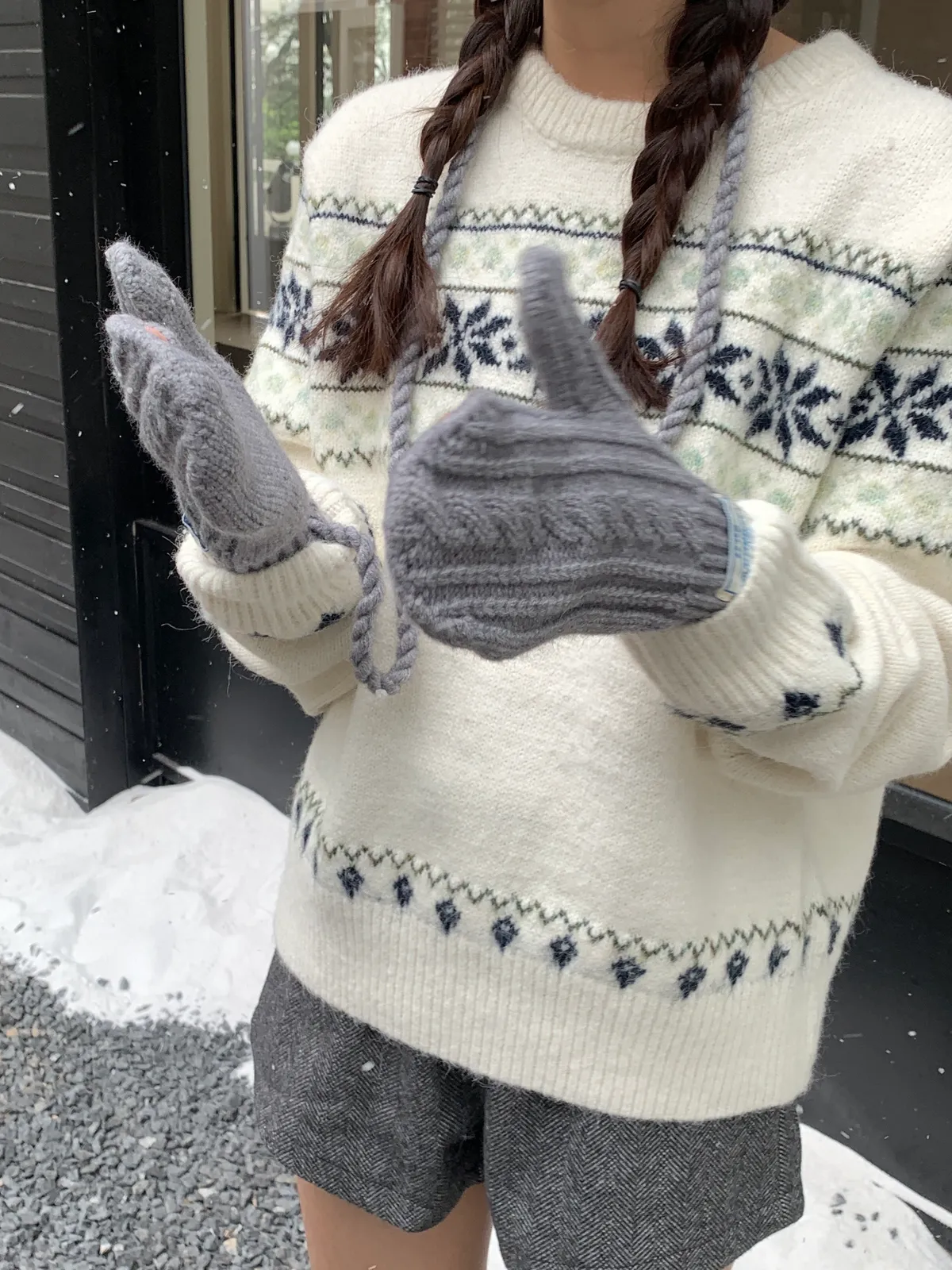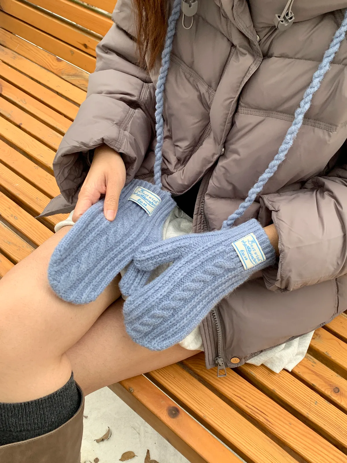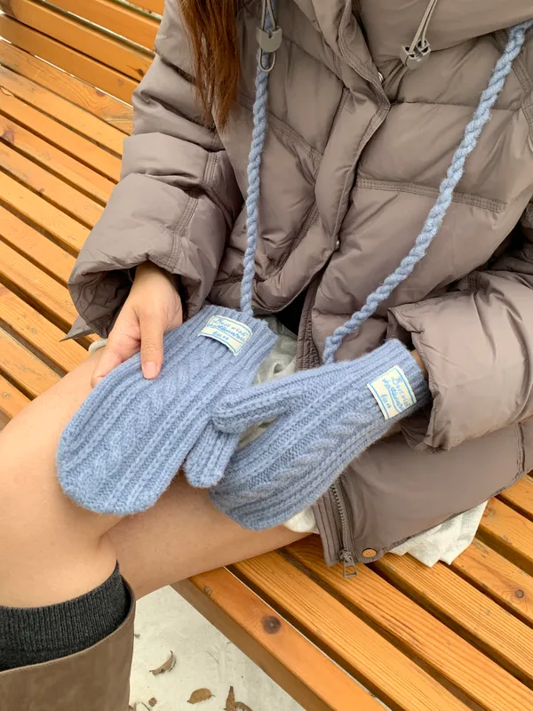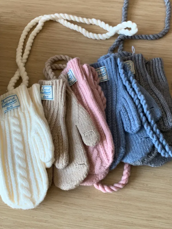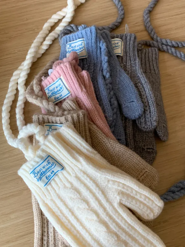 奶呼呼|小標麻花針織掛脖手套