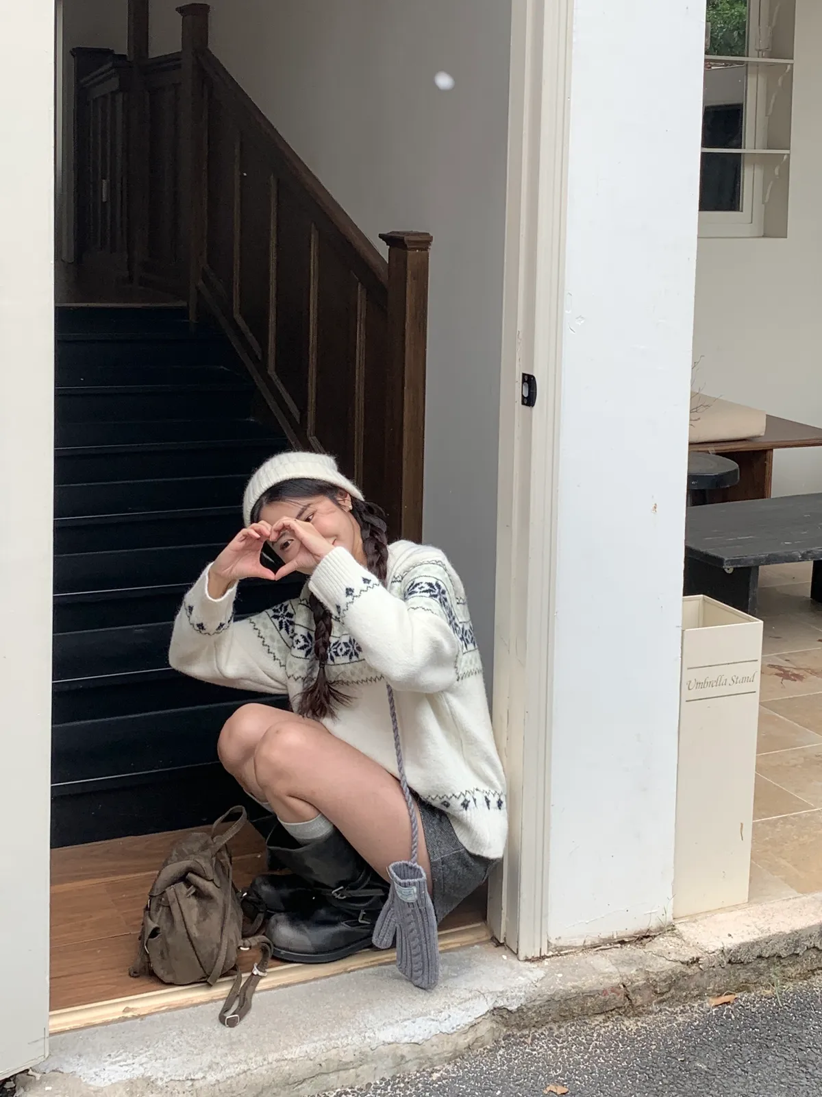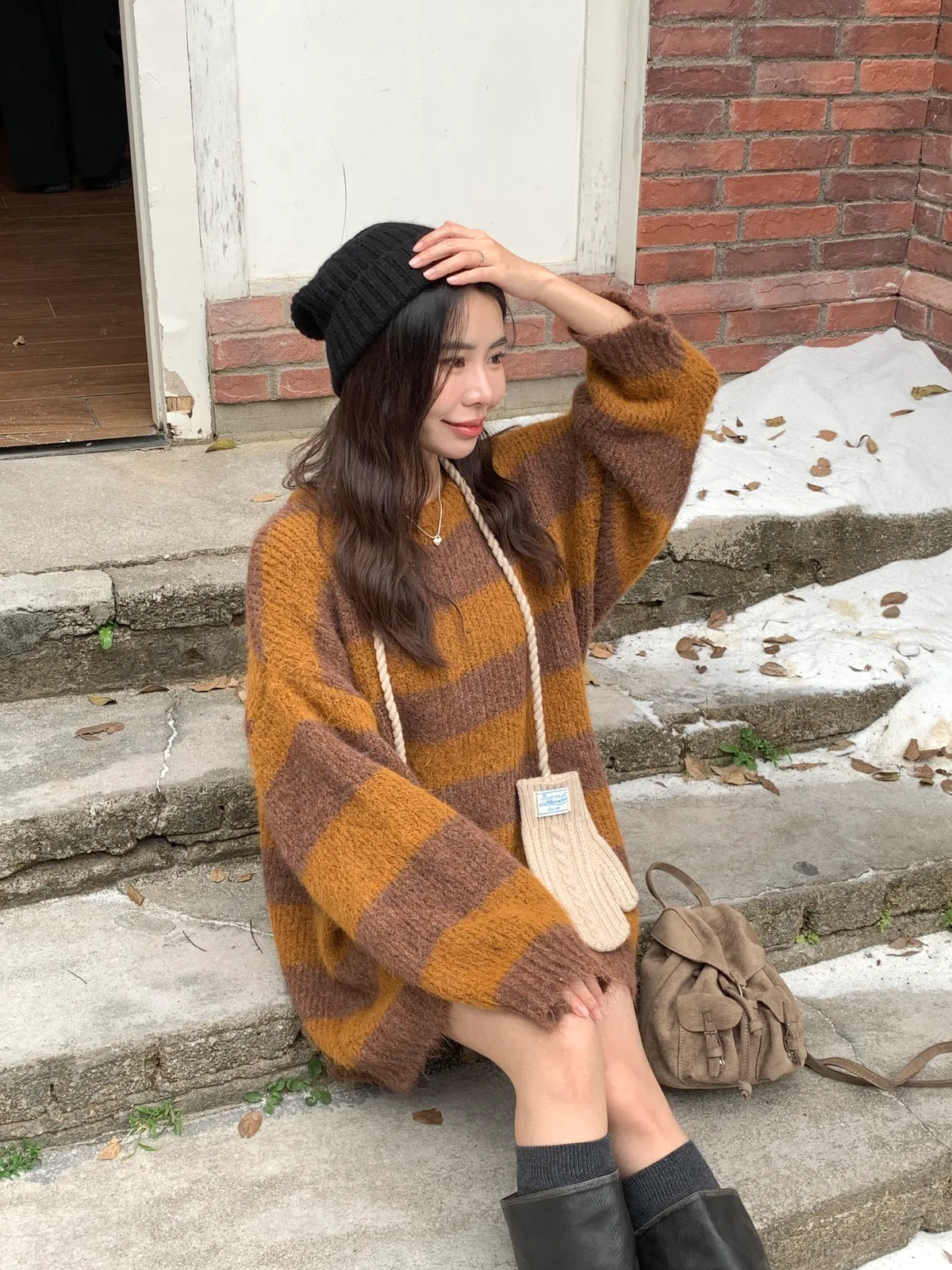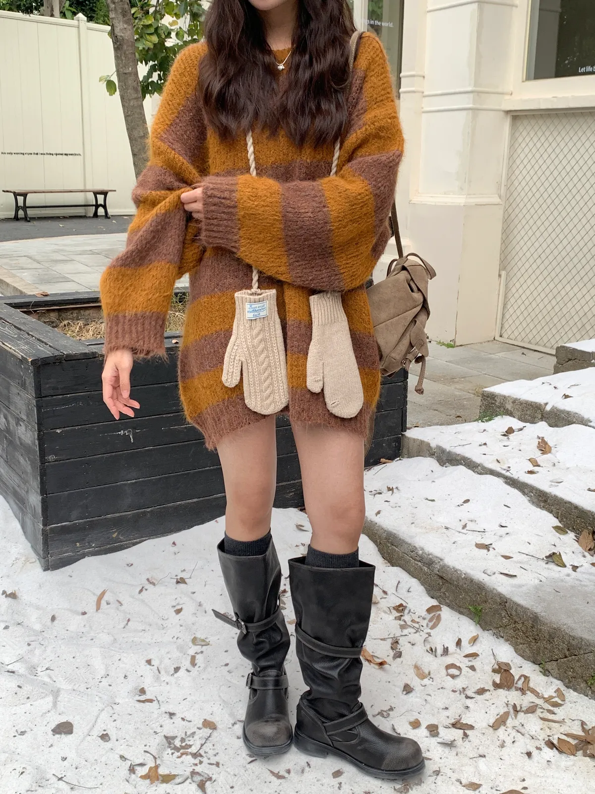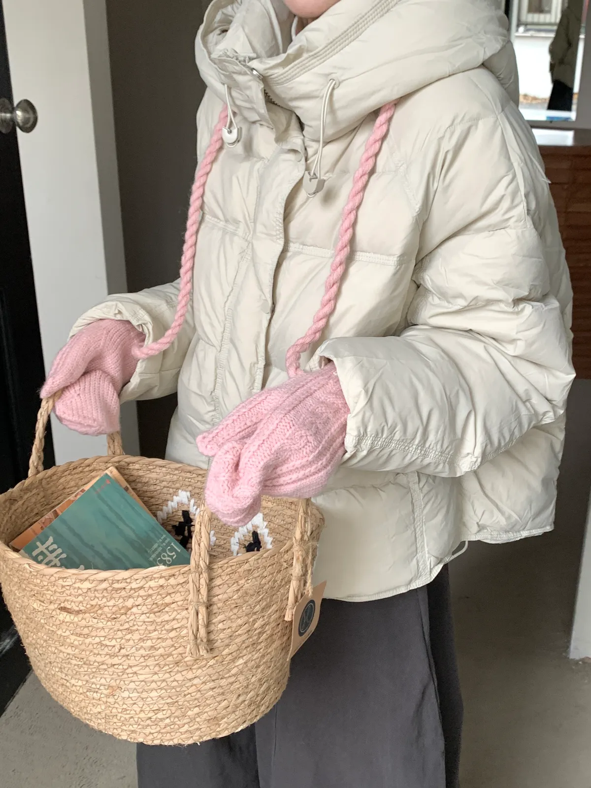 奶呼呼|小標麻花針織掛脖手套