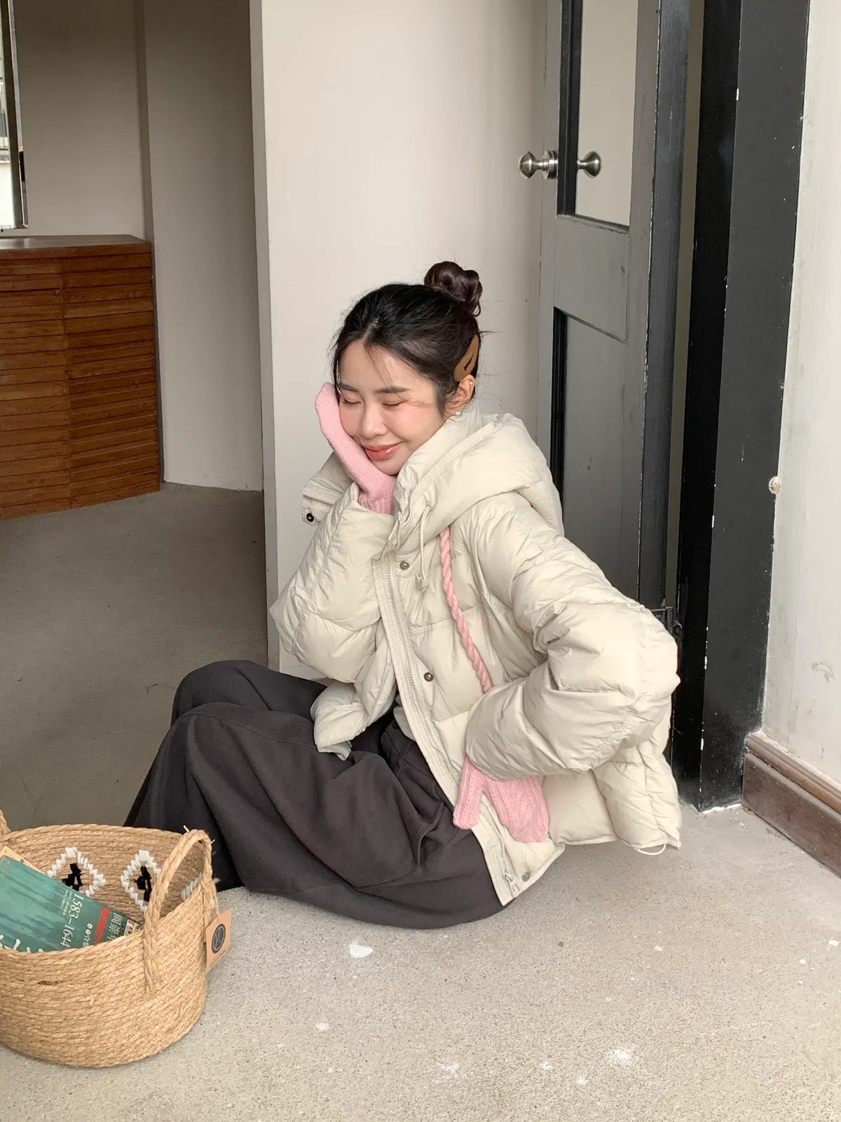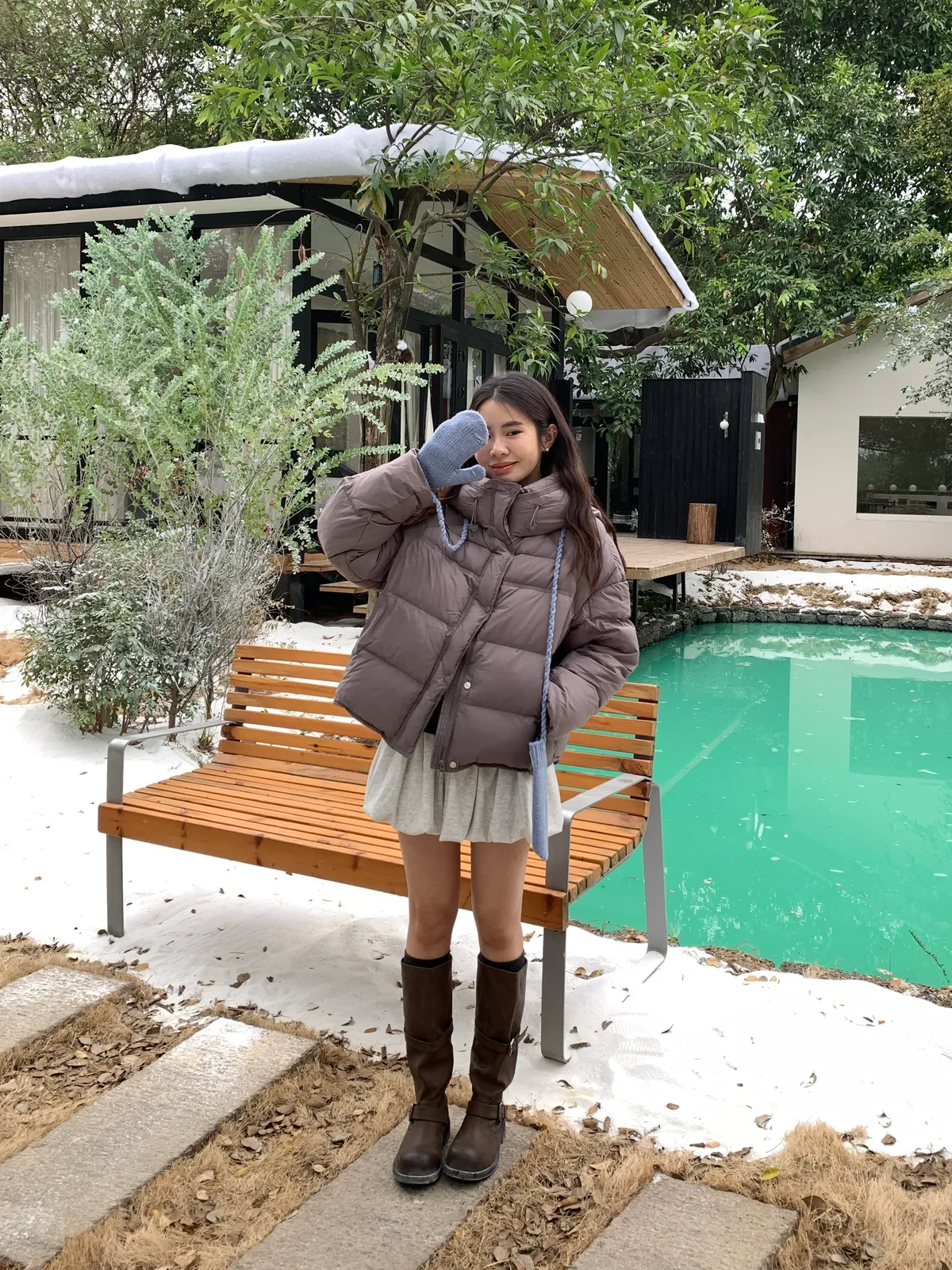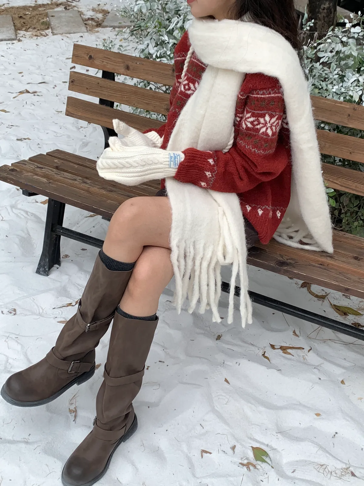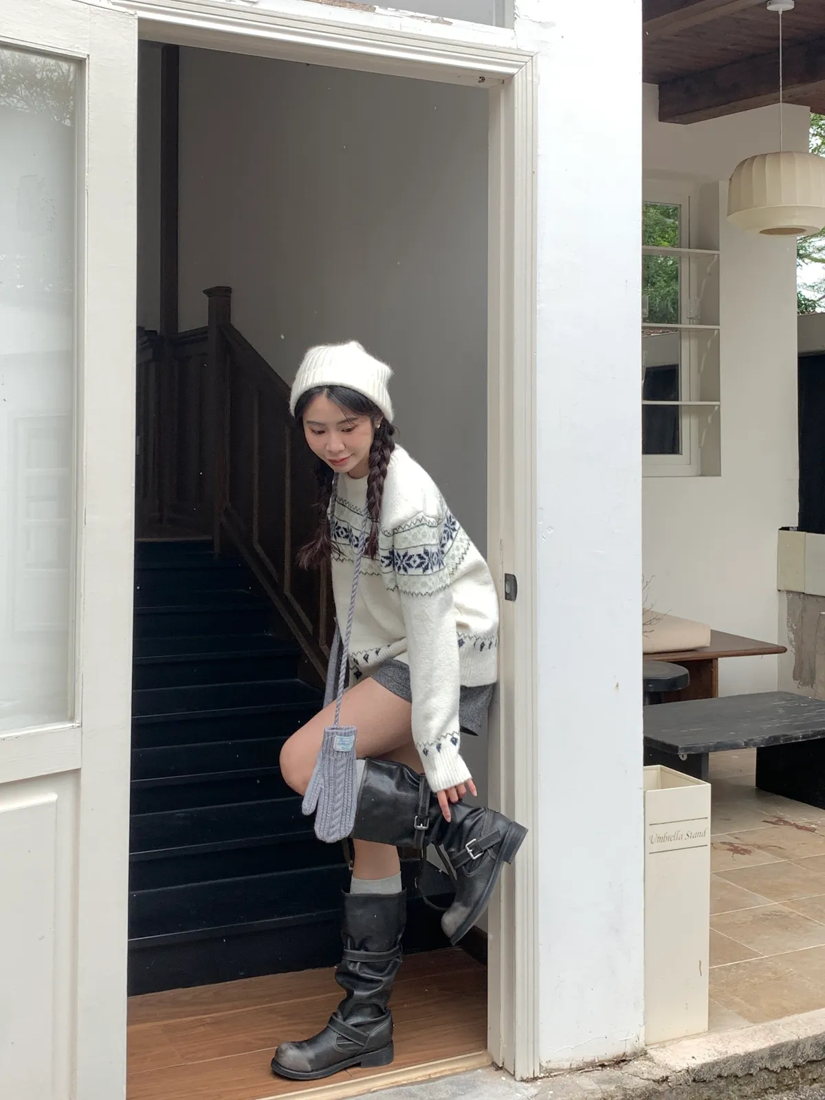 奶呼呼|小標麻花針織掛脖手套