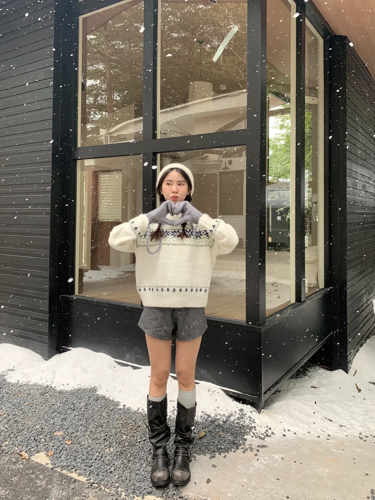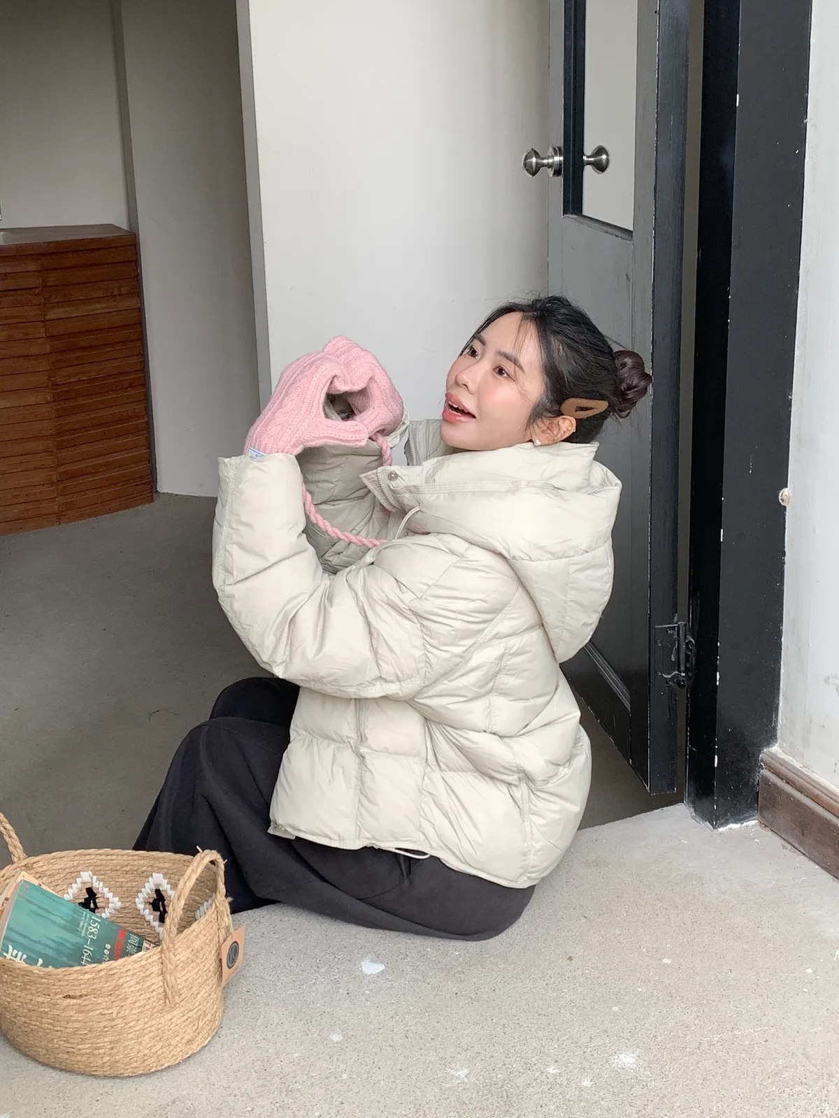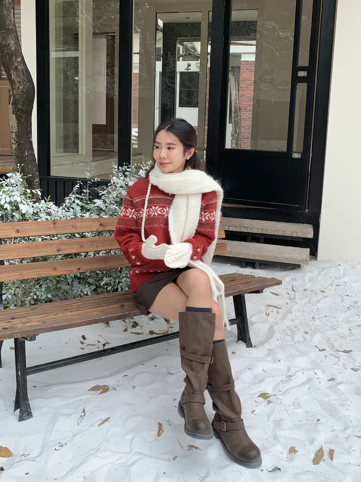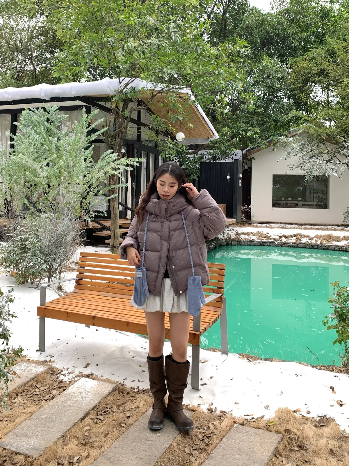 奶呼呼|小標麻花針織掛脖手套