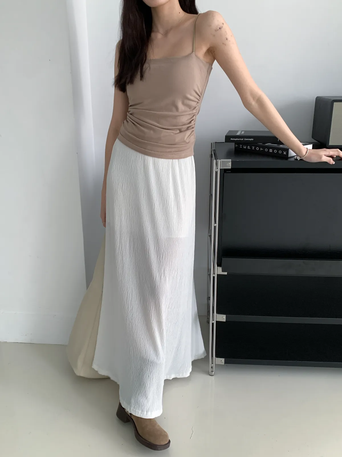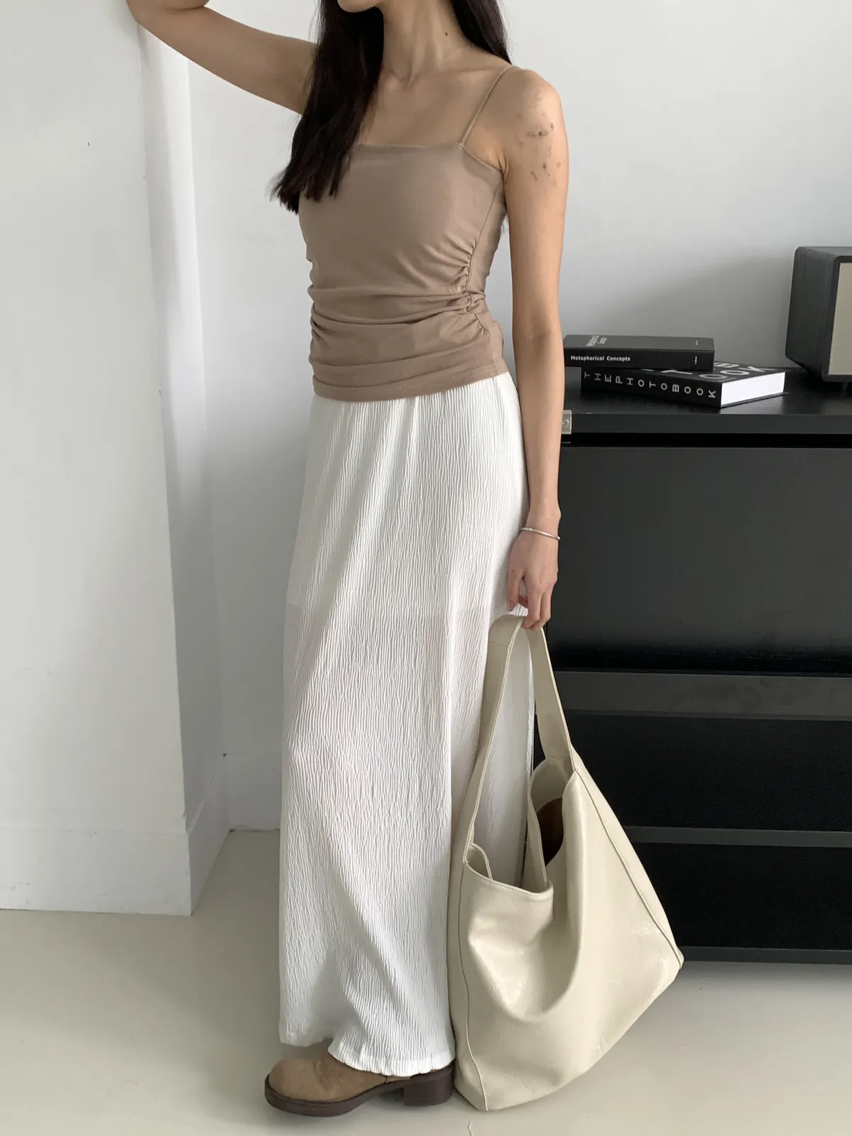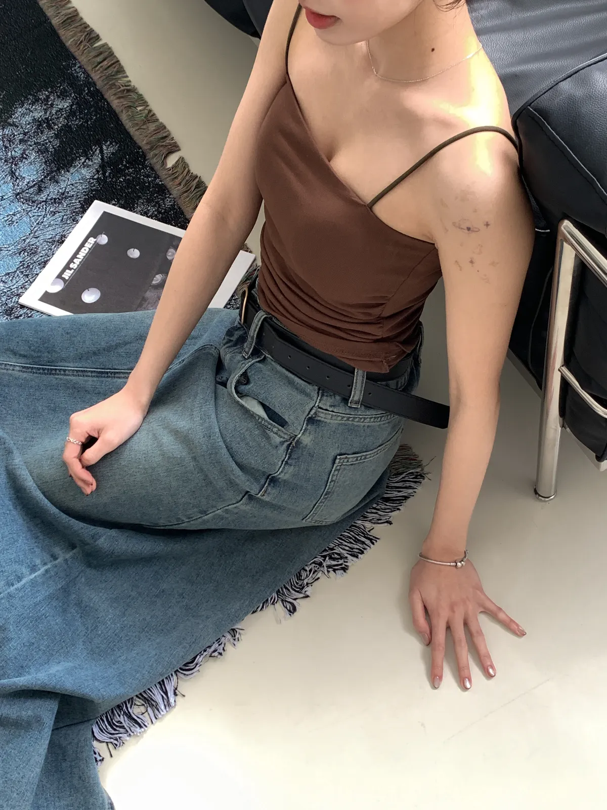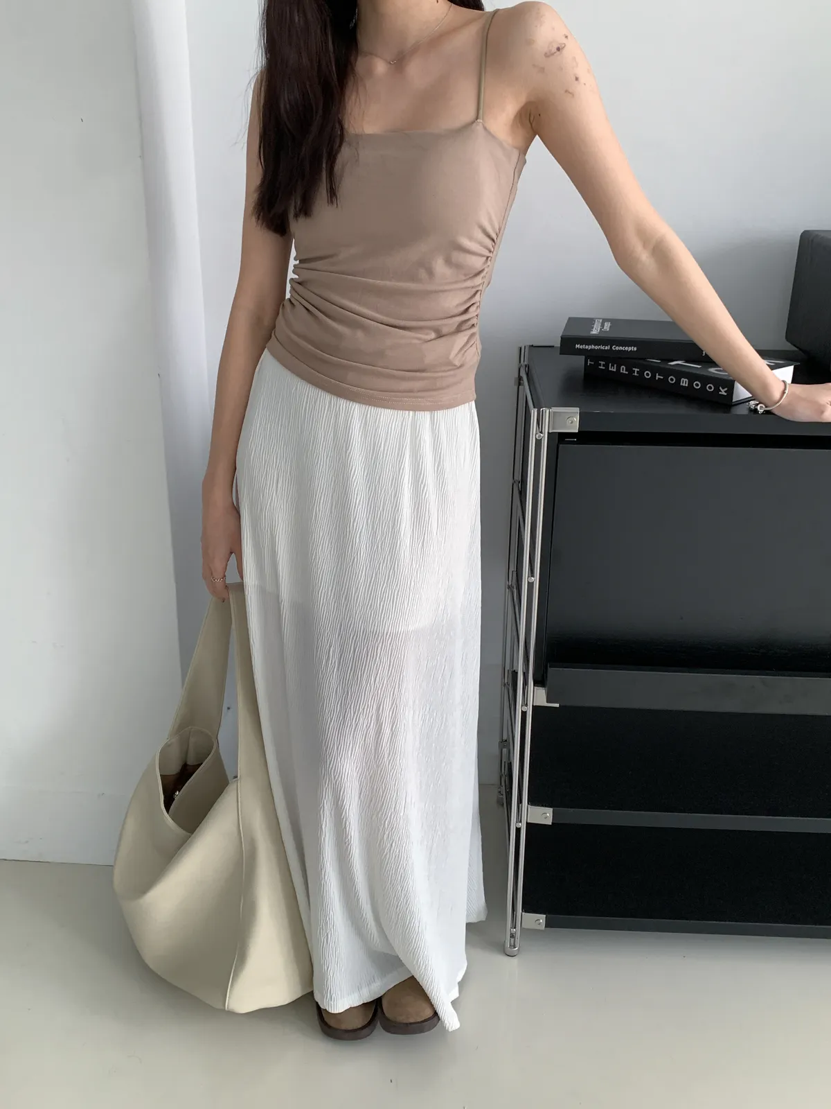 (穿咖色很顯皮膚白 長度蓋到肚臍)