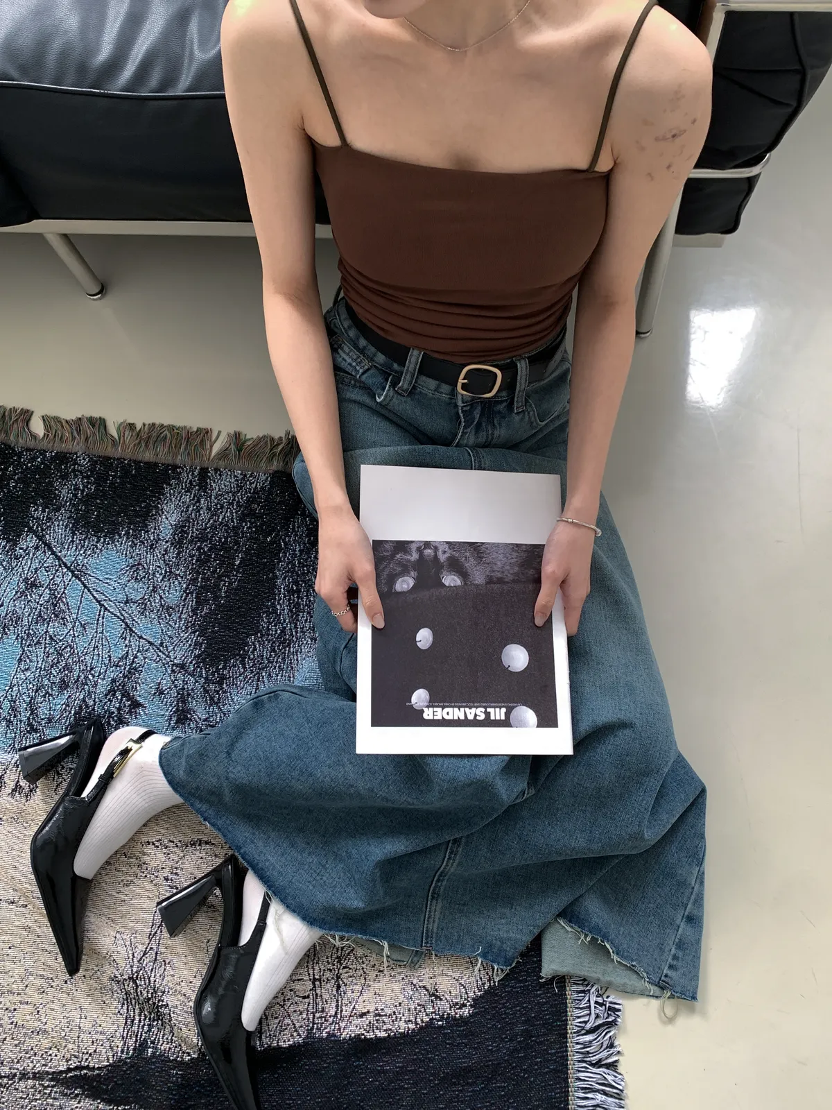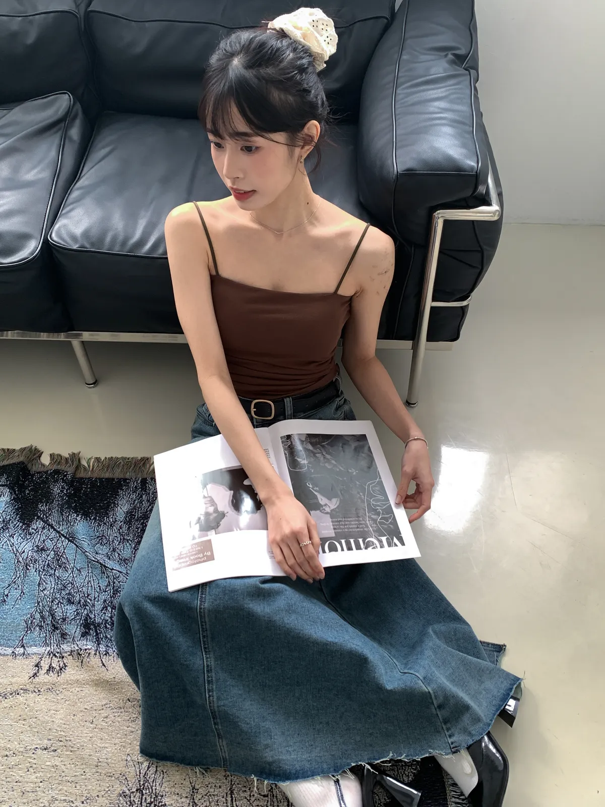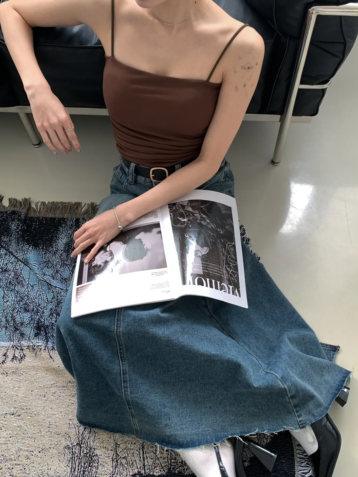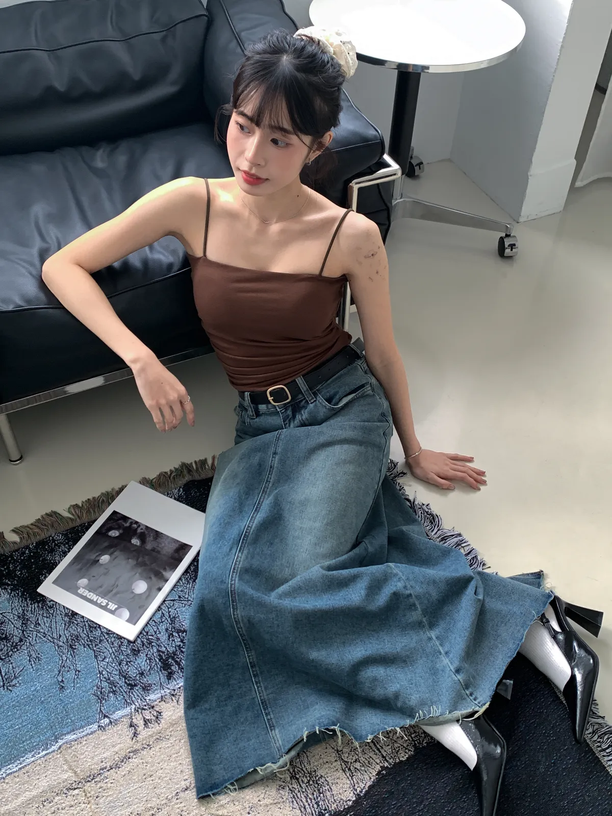 (穿咖色很顯皮膚白 長度蓋到肚臍)