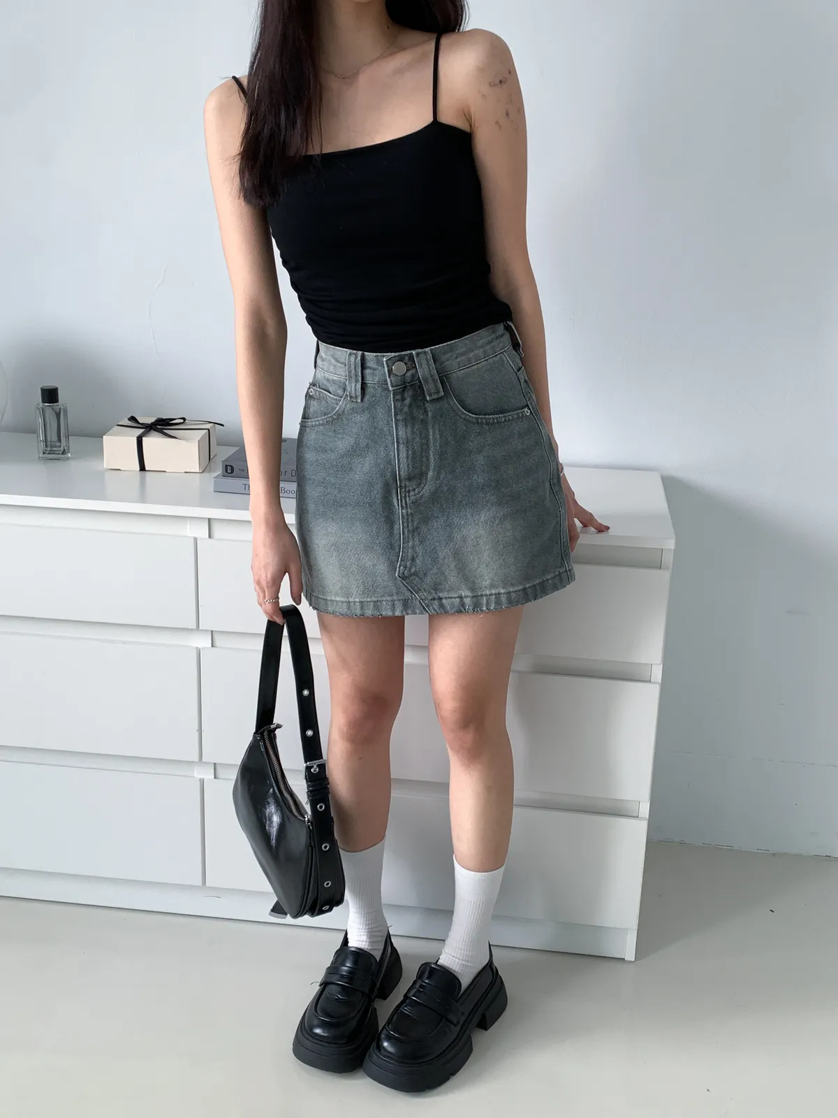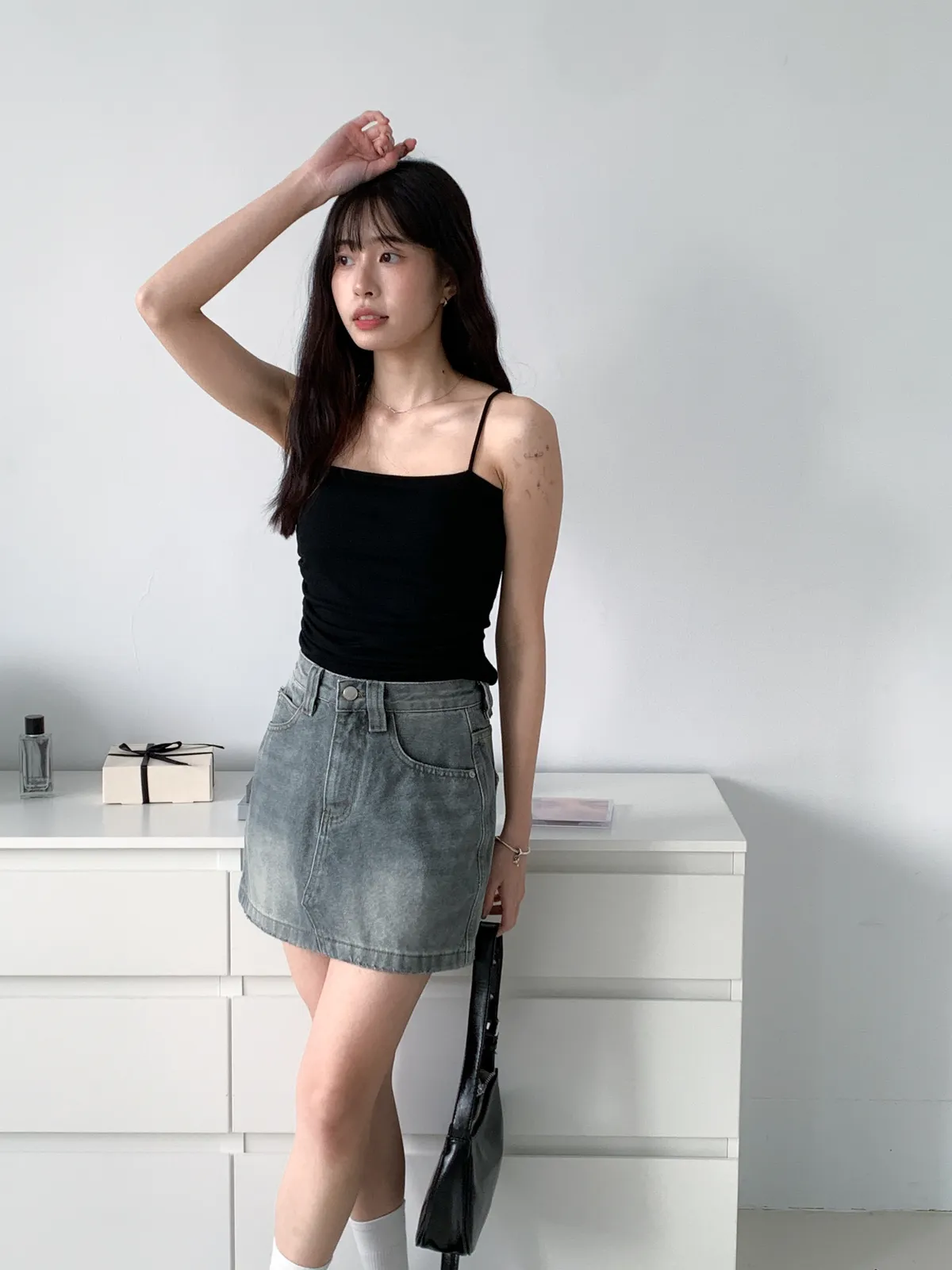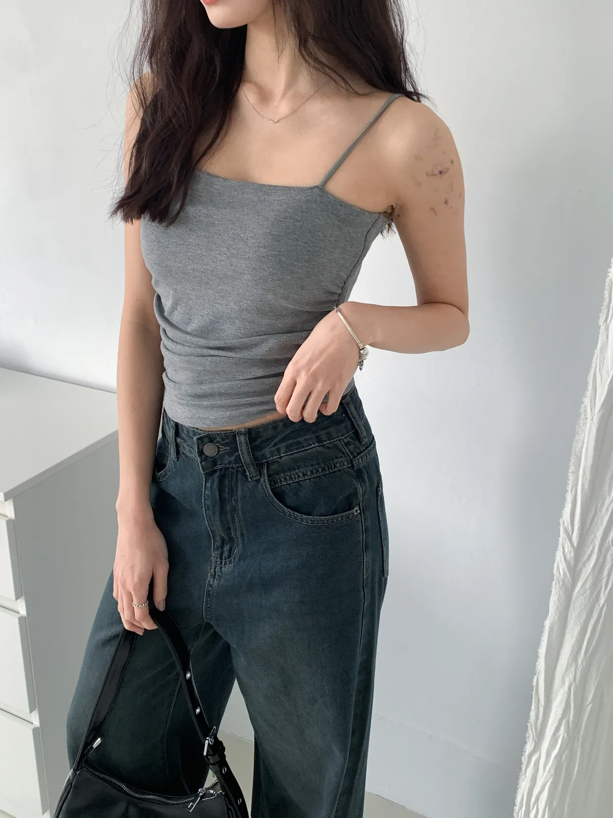 (搭配透膚上衣也很好看 肩帶外露也不尷尬 長度蓋到肚臍)